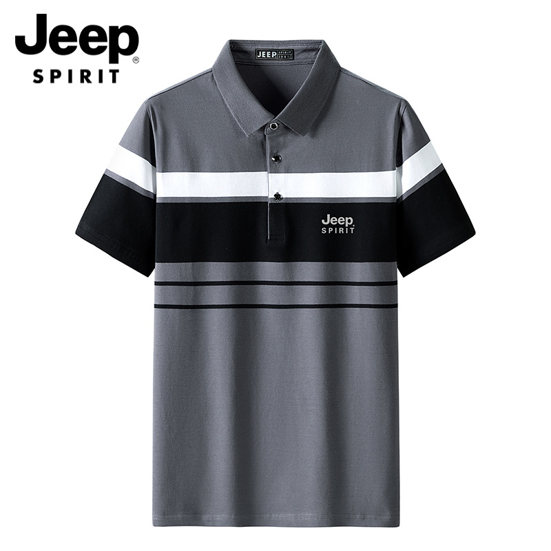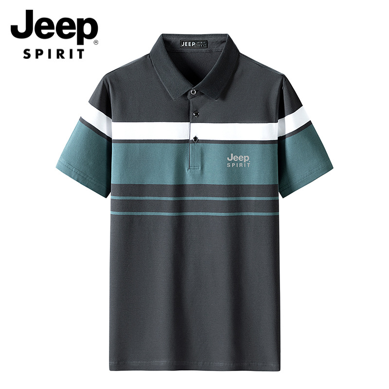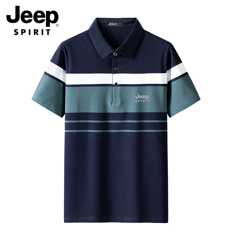 JEEP SPIRIT春夏新款条纹短袖T恤男夏季商务休闲翻领polo衫中年流行上衣 JP-Polo2321