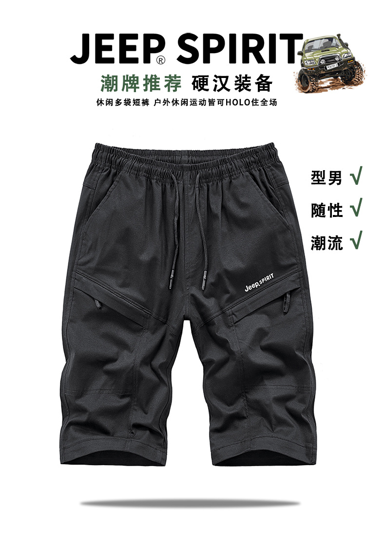 JEEP SPIRIT春季新款男士短裤户外运动裤多袋工装裤宽松直筒松紧裤腰 JPLJ-2269
