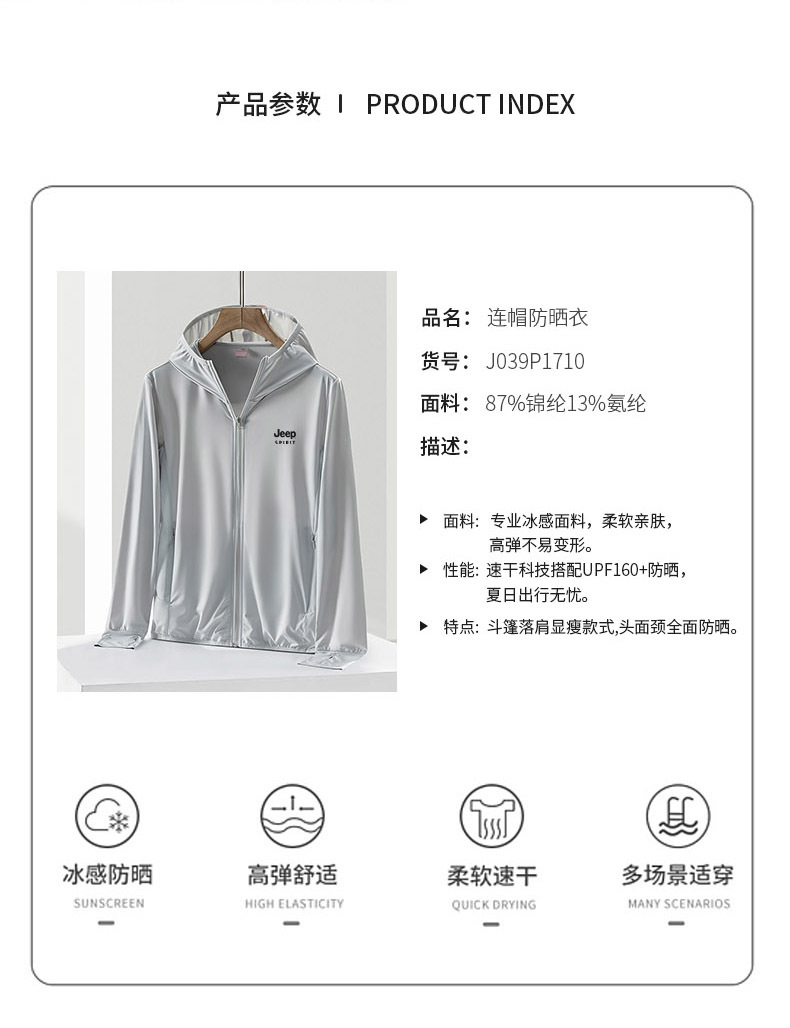 JEEP SPIRIT夏季新款防晒衣时尚透气 男士户外皮肤衣J039P1710#