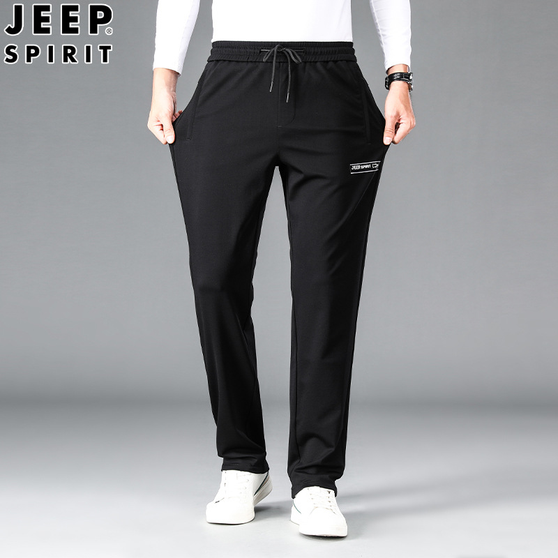 JEEP SPIRIT春夏新款男士宽松直筒透气抽绳运动卫裤春季工装休闲长裤子男 H-3301