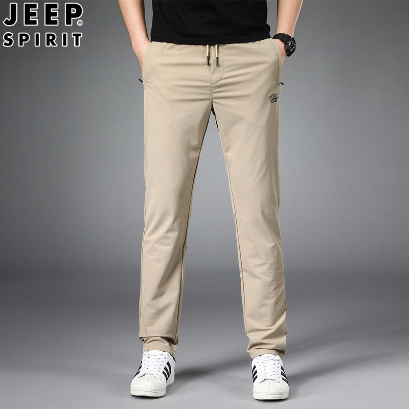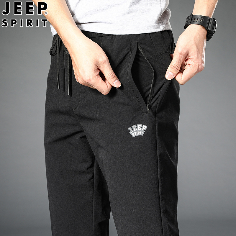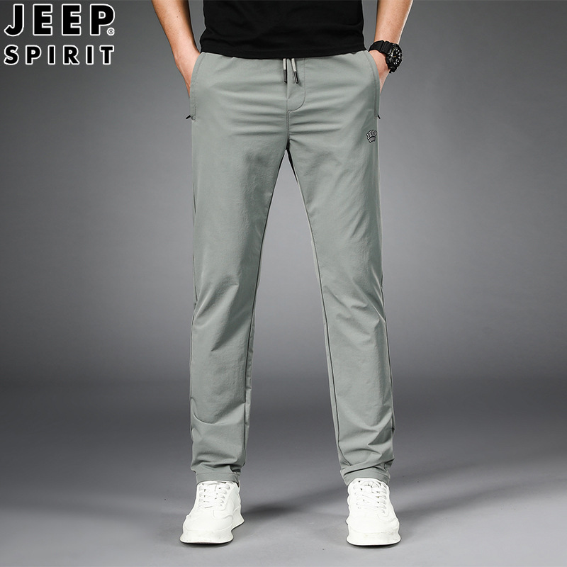 JEEP SPIRIT春夏新款男士针织长裤卫裤系带松紧腰直筒时尚休闲春款纯色裤 H-2316