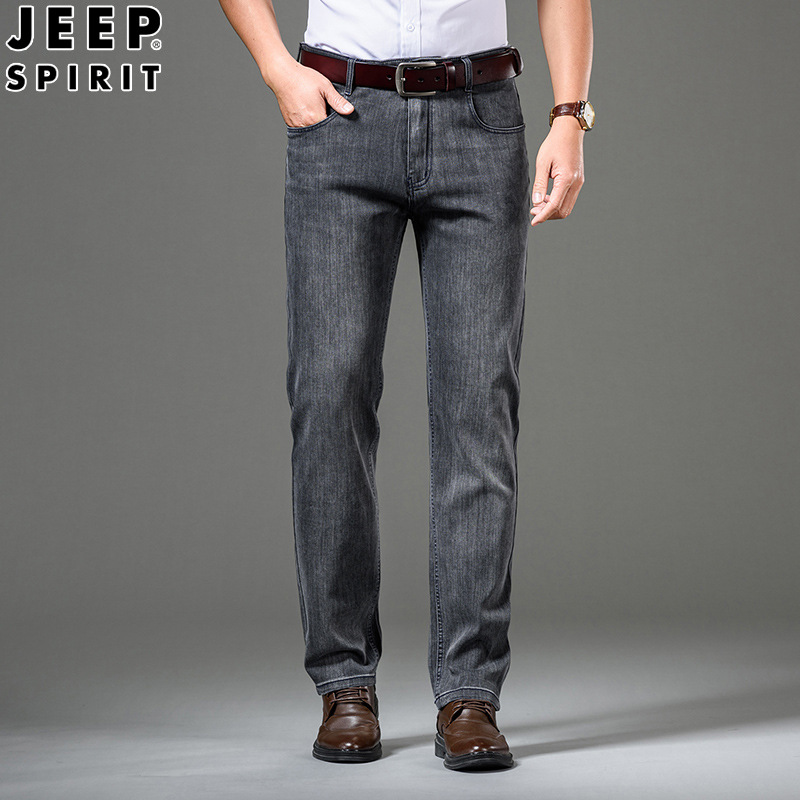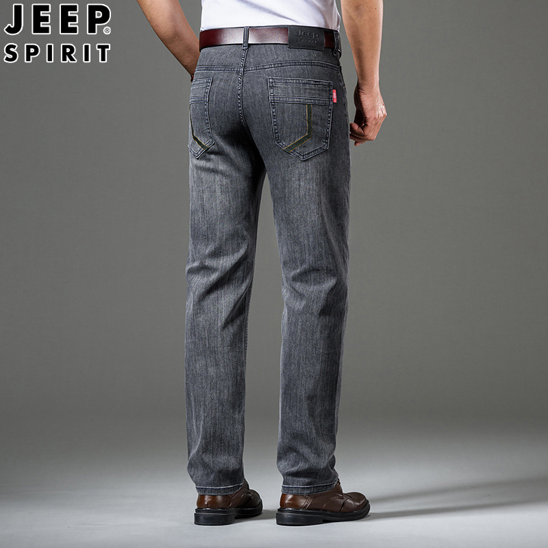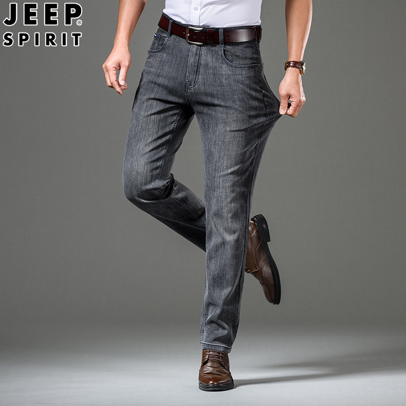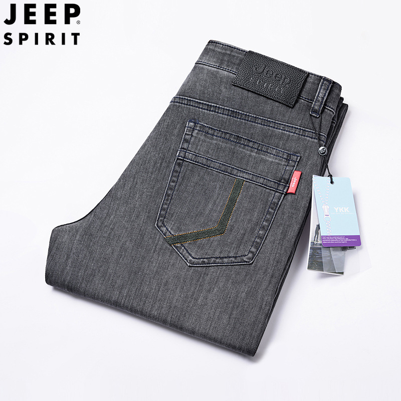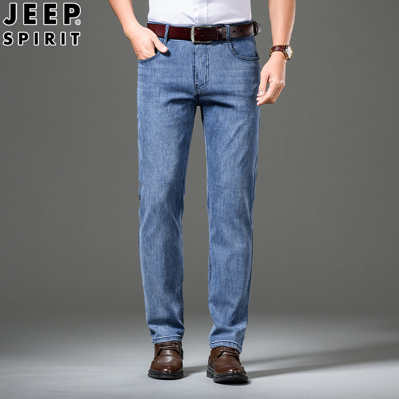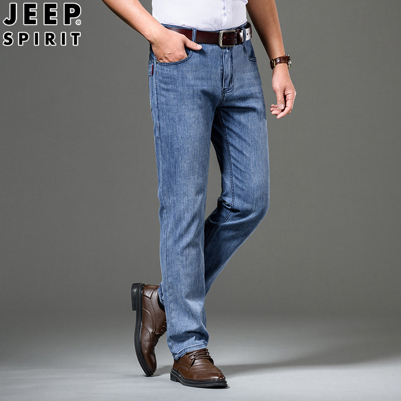 JEEP SPIRIT春夏新款薄款牛仔裤男宽松直筒弹力中年商务中腰斜口袋长裤子 H-J9006