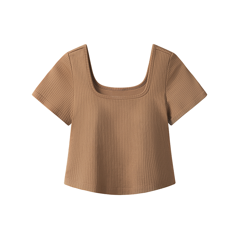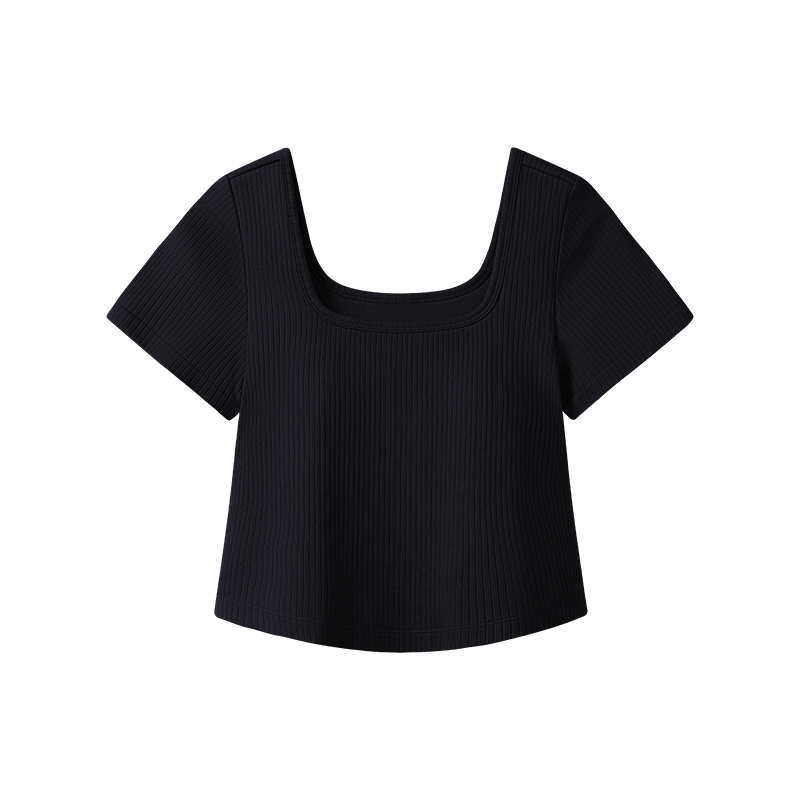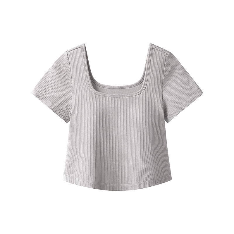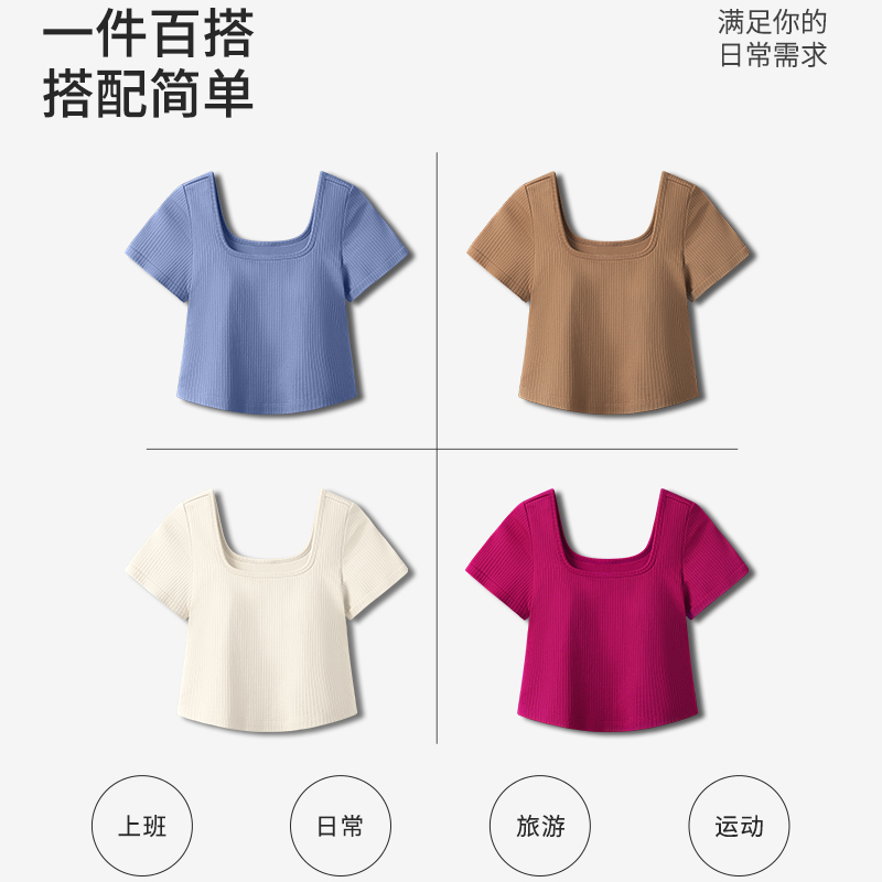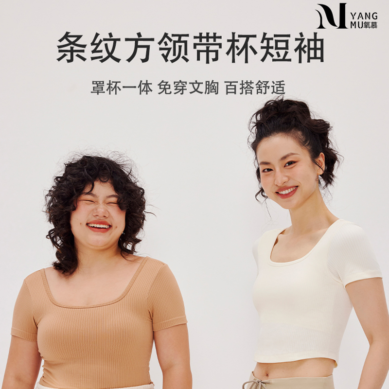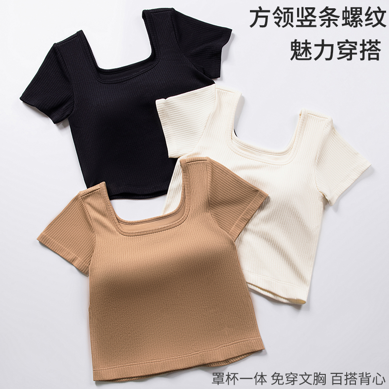 Lomen.DN方领带杯短袖无缝露脐女士一体式上衣夏透气显瘦短款T恤 LA019