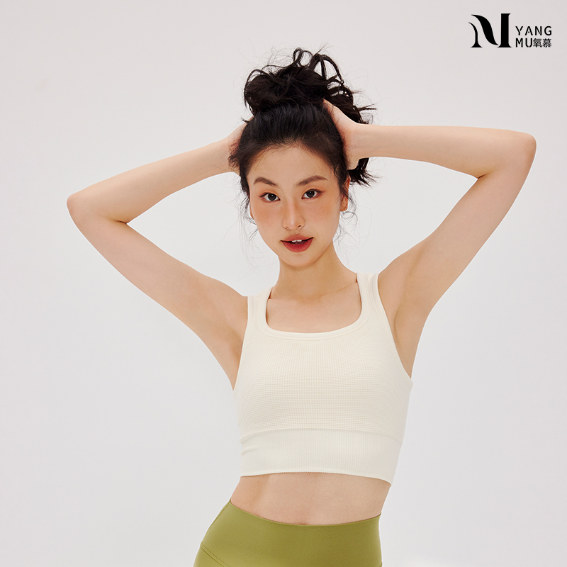 Lomen.DN氧慕系列中高强度运动瑜伽背心无缝收副乳方领带胸垫文胸内衣女LA013