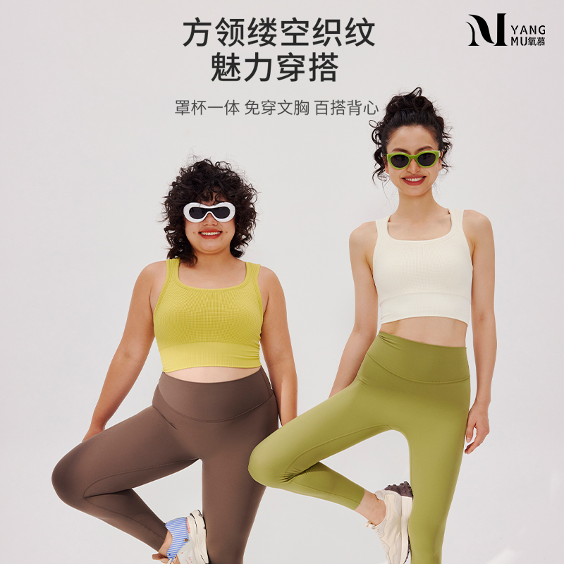 服饰配饰>女装>背心> Lomen.DN氧慕系列中高强度运动瑜伽背心无缝收副乳方领带胸垫文胸内衣女LA013