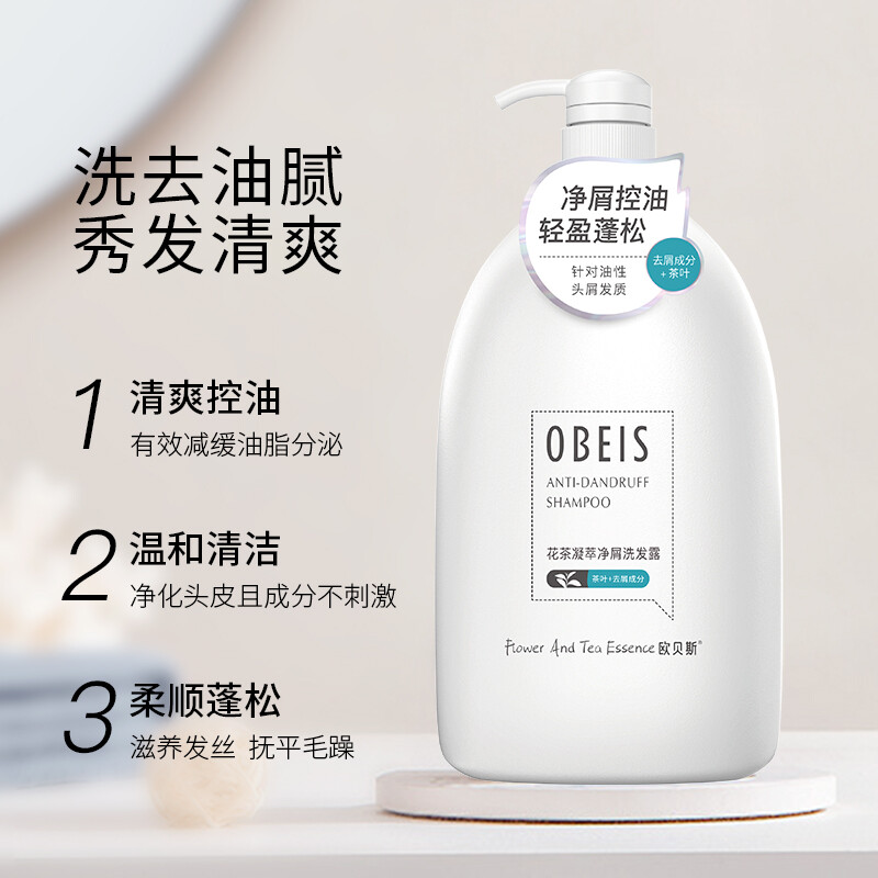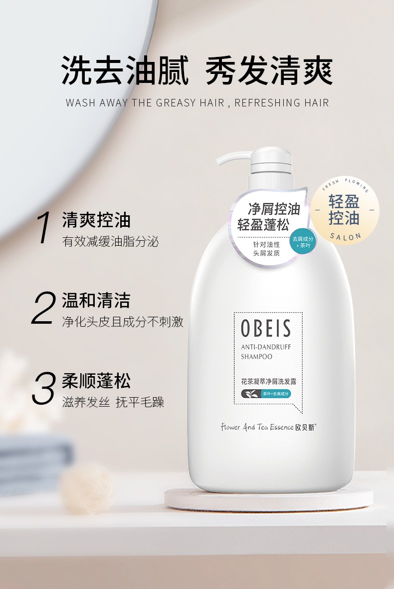 欧贝斯(obeis)洗发水花茶凝萃净屑控油洗发露1kg(轻盈蓬松 去屑清爽 深层清洁)6936501010788