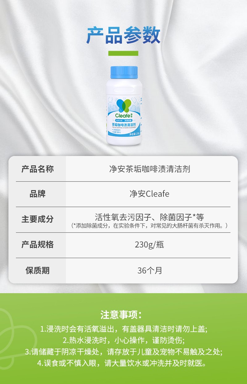 净安茶渍茶垢清洁剂去茶渍茶壶具清洗剂咖啡机渍除垢剂去茶垢神器230g/瓶