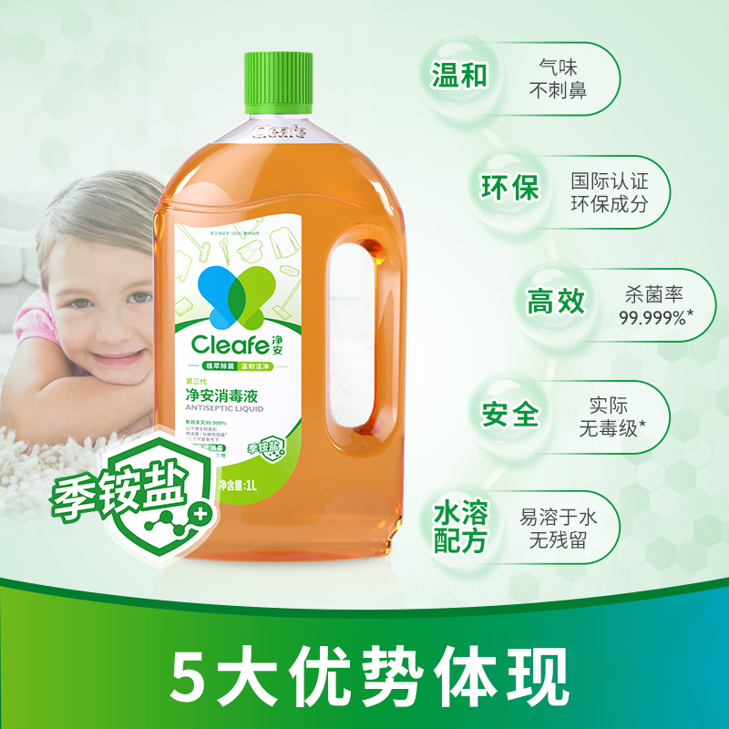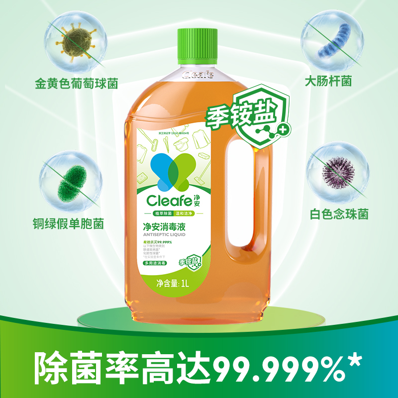 净安(Cleafe)季铵盐 消毒液 1L 衣物居家室内杀菌 地板消毒 宠物环境消毒 杀菌率99.999%
