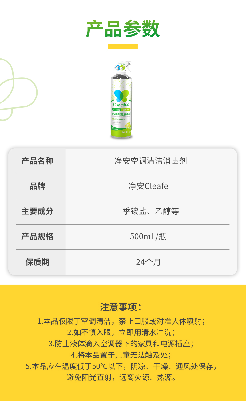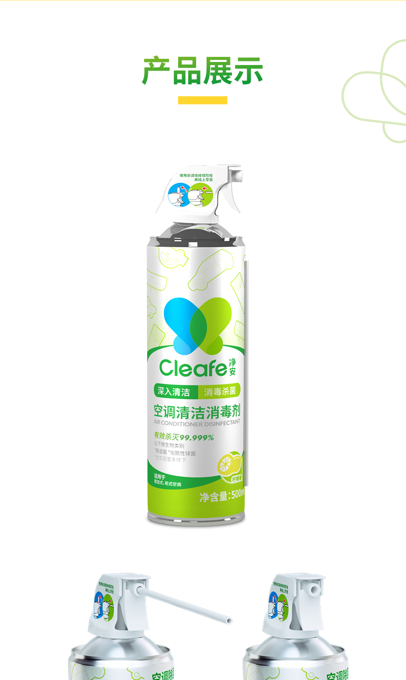 净安(Cleafe)空调清洗剂柠檬香500ml/罐家用除菌免拆洗空调清洁剂除菌率99.9%