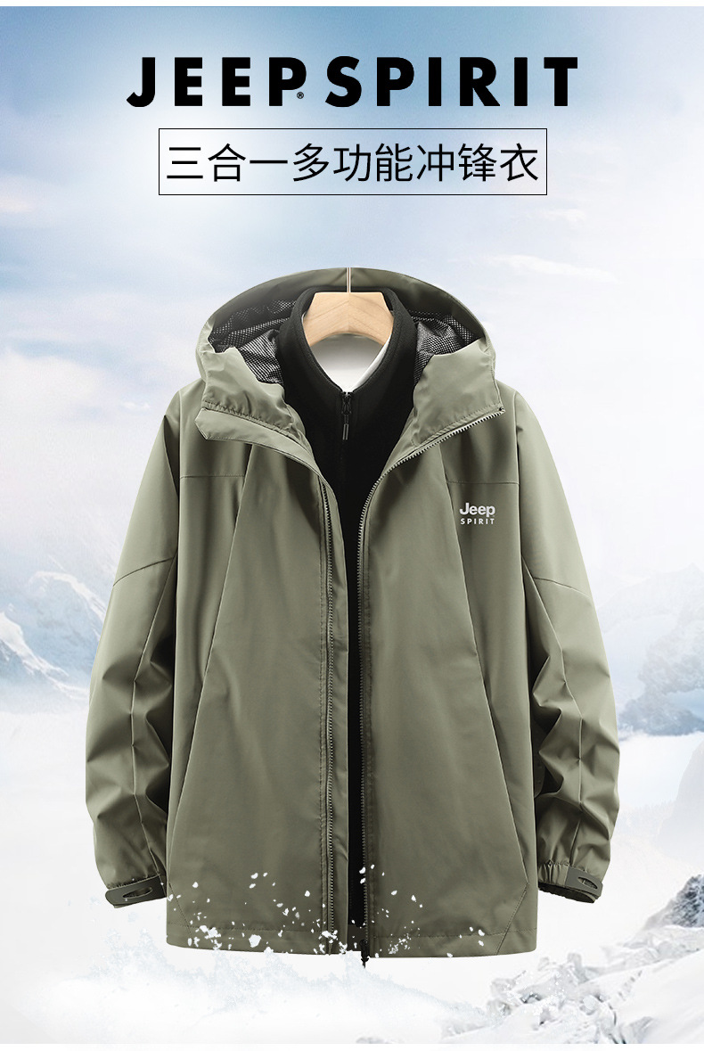 JEEP SPIRIT秋冬季新款男式三合一冲锋衣防风御寒休闲百搭防御拒水透气JP6528