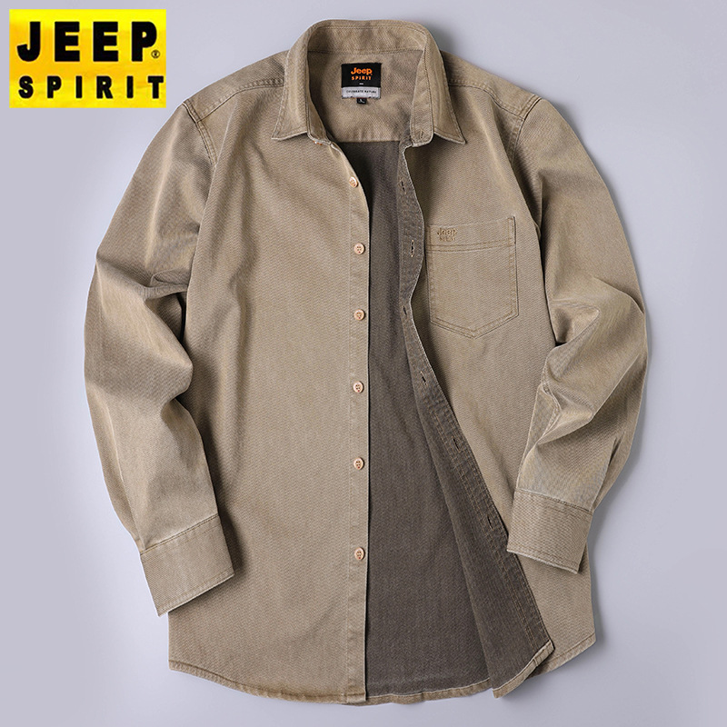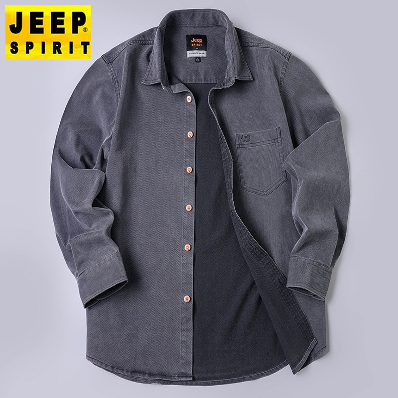 JEEP SPIRIT秋冬新款男士户外休闲长袖衬衫透气时尚百搭日常简约纯色SD-2058