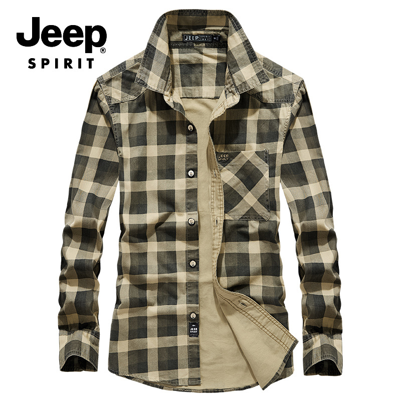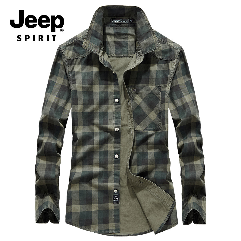 JEEP SPIRIT秋冬季新款男式军旅风长袖衬衫透气舒适百搭时尚翻领设计JPL0021