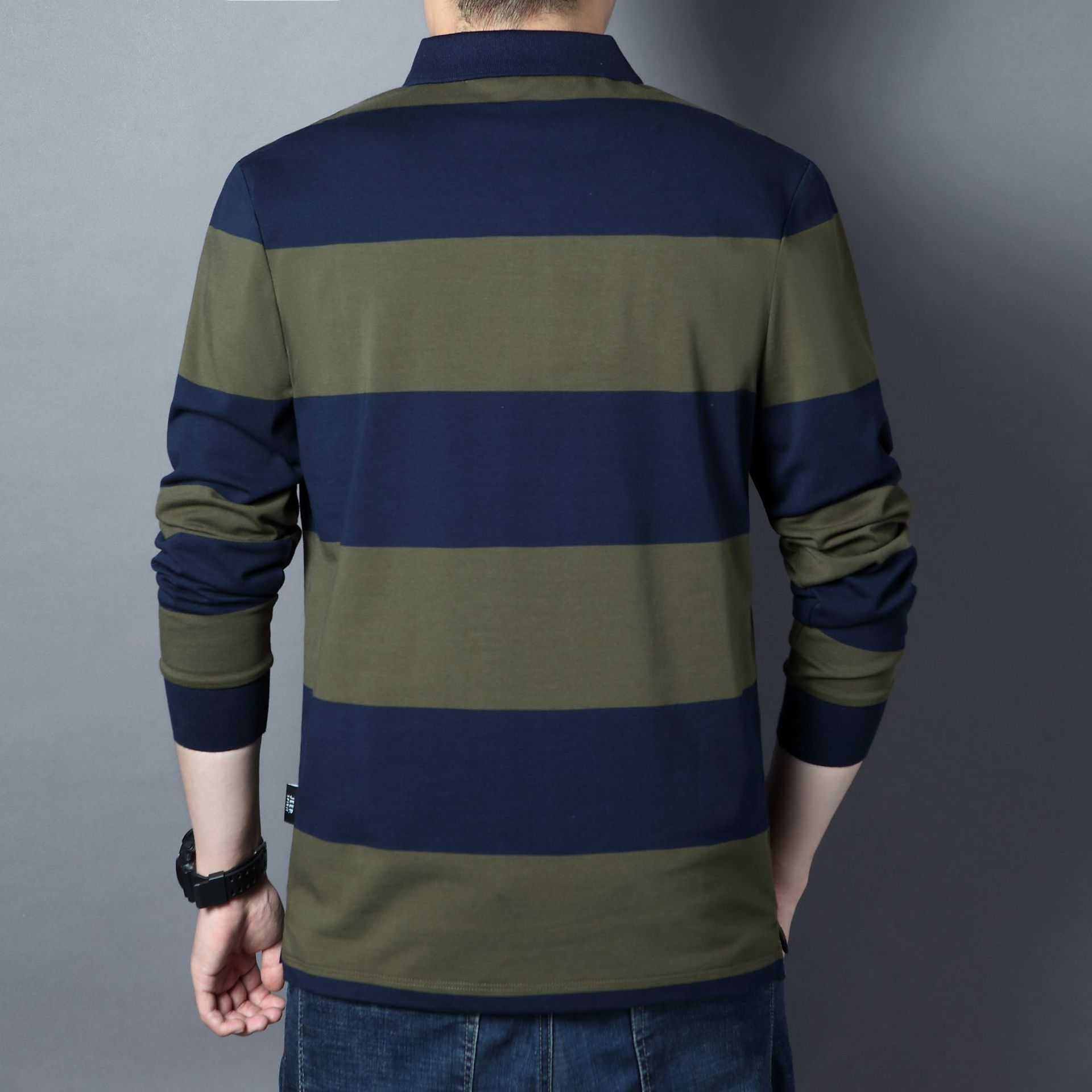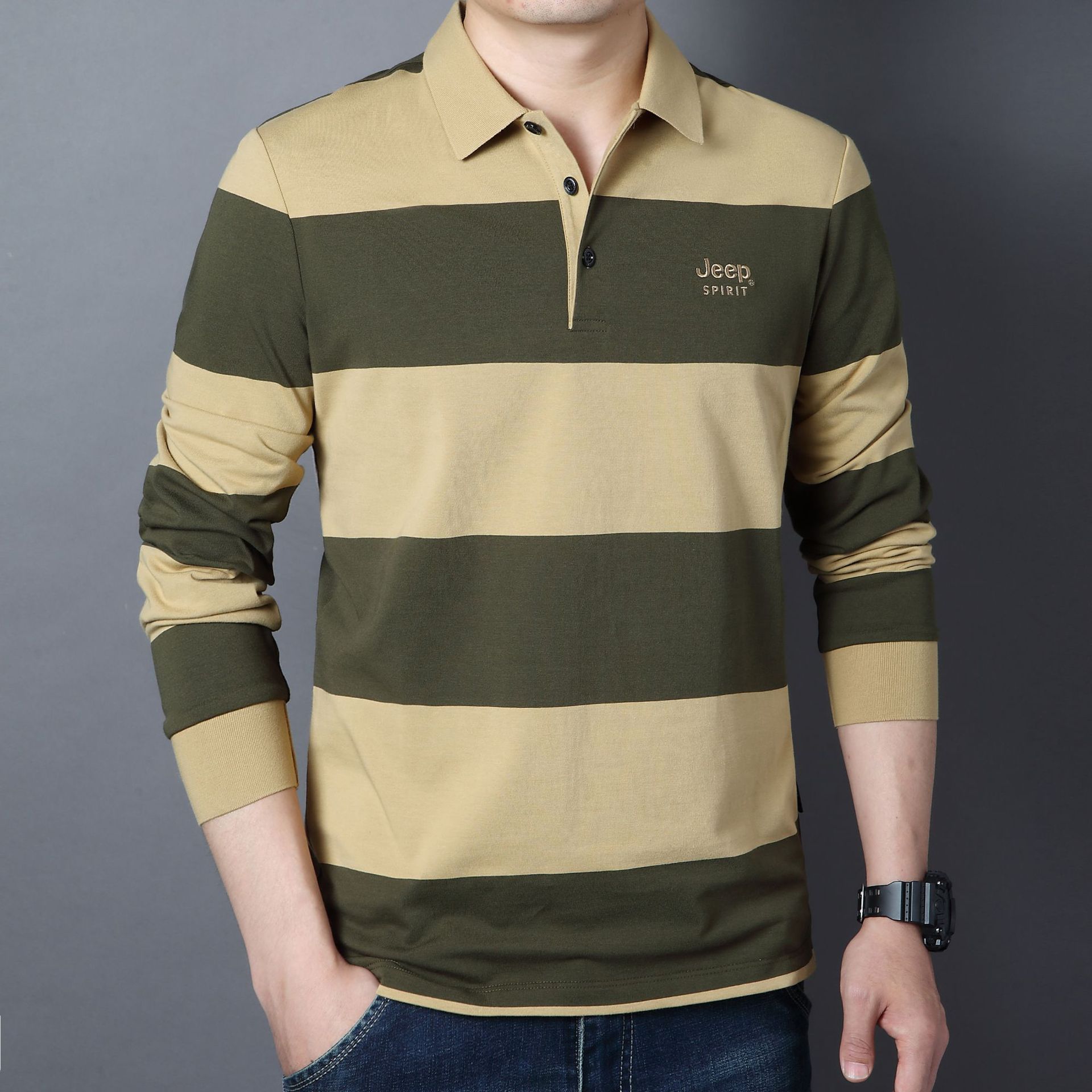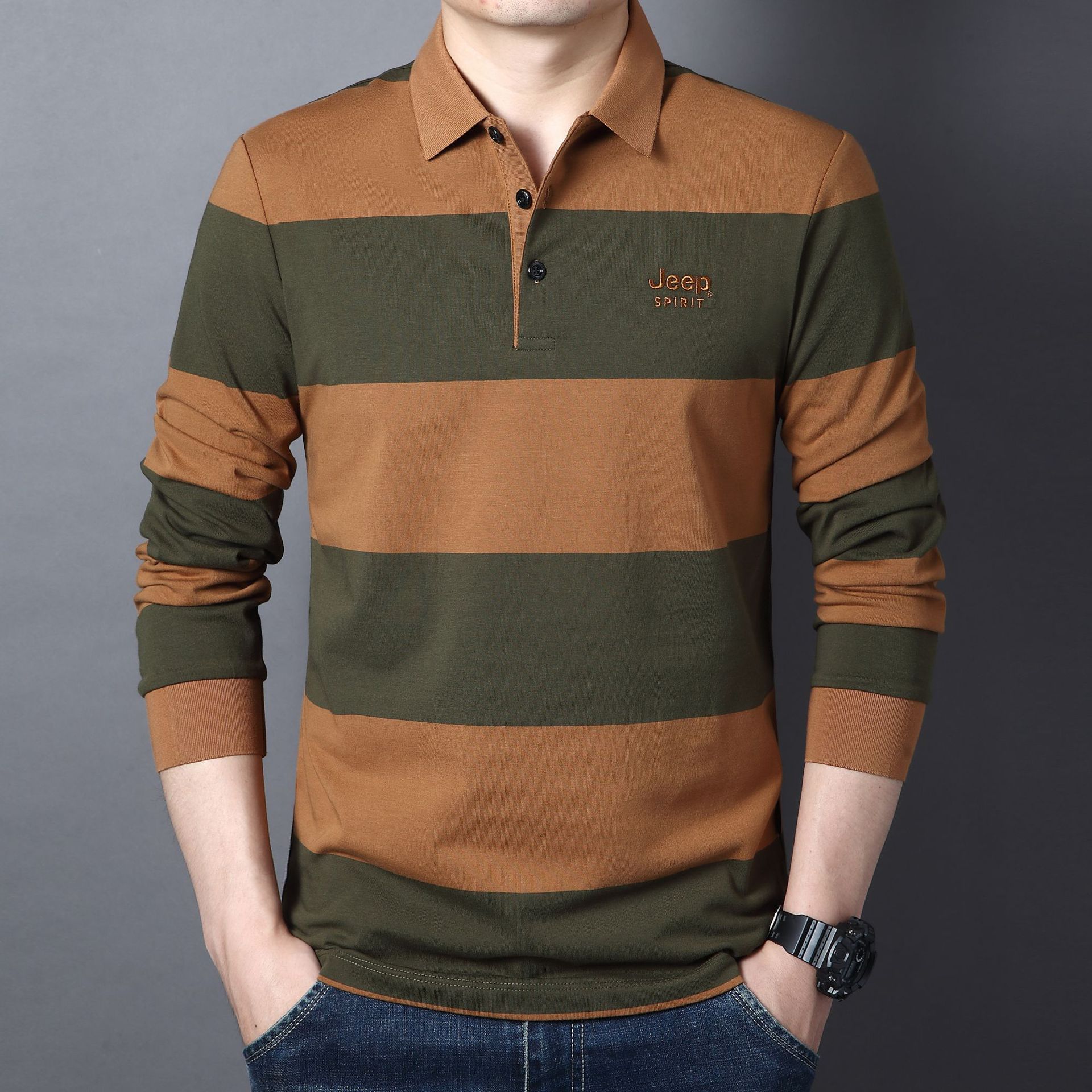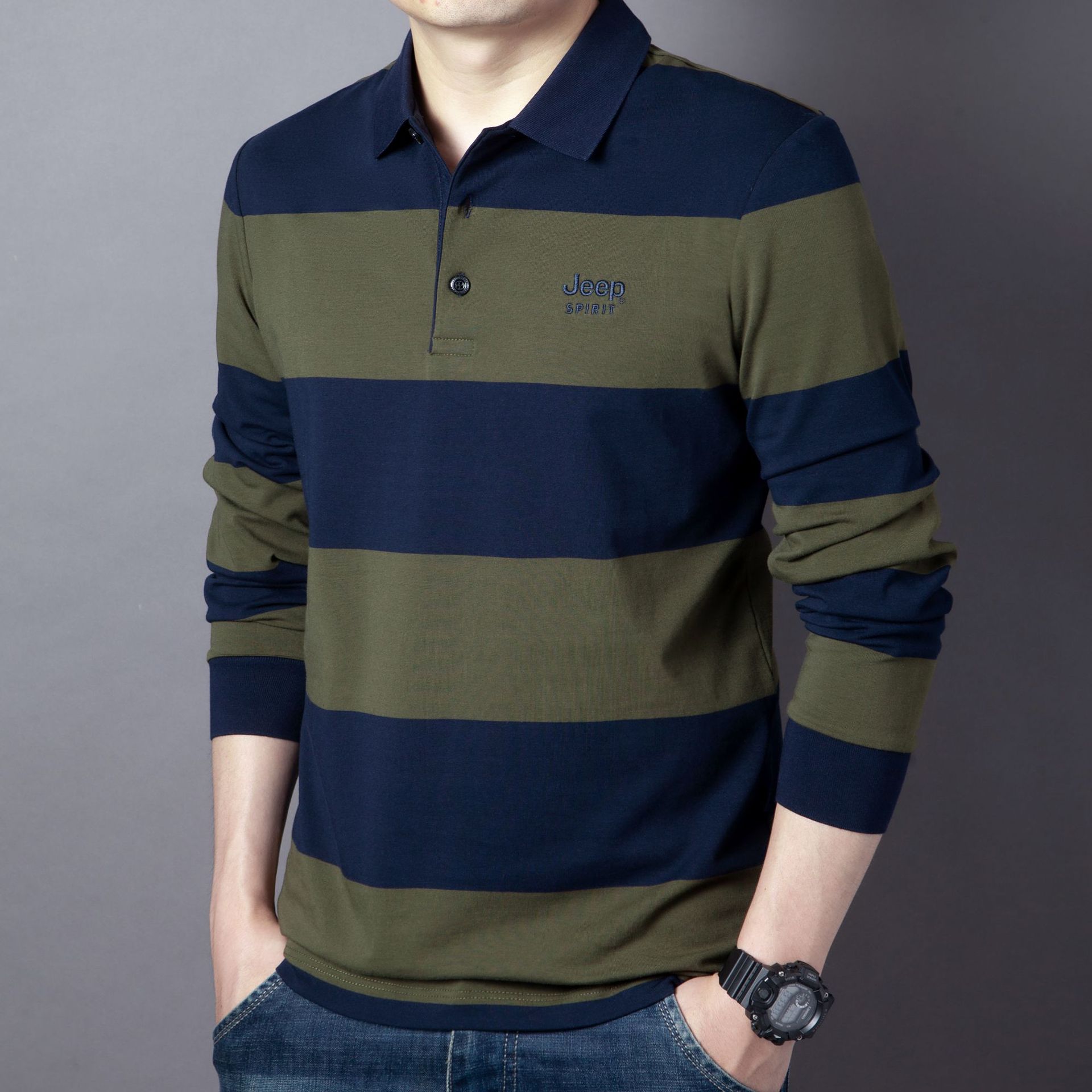 JEEP SPIRIT秋冬新款男士条纹长袖T恤拼色简约休闲时尚户外日常百搭透气 DS-7001