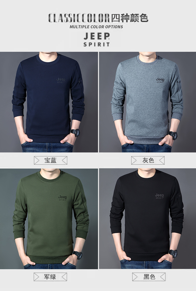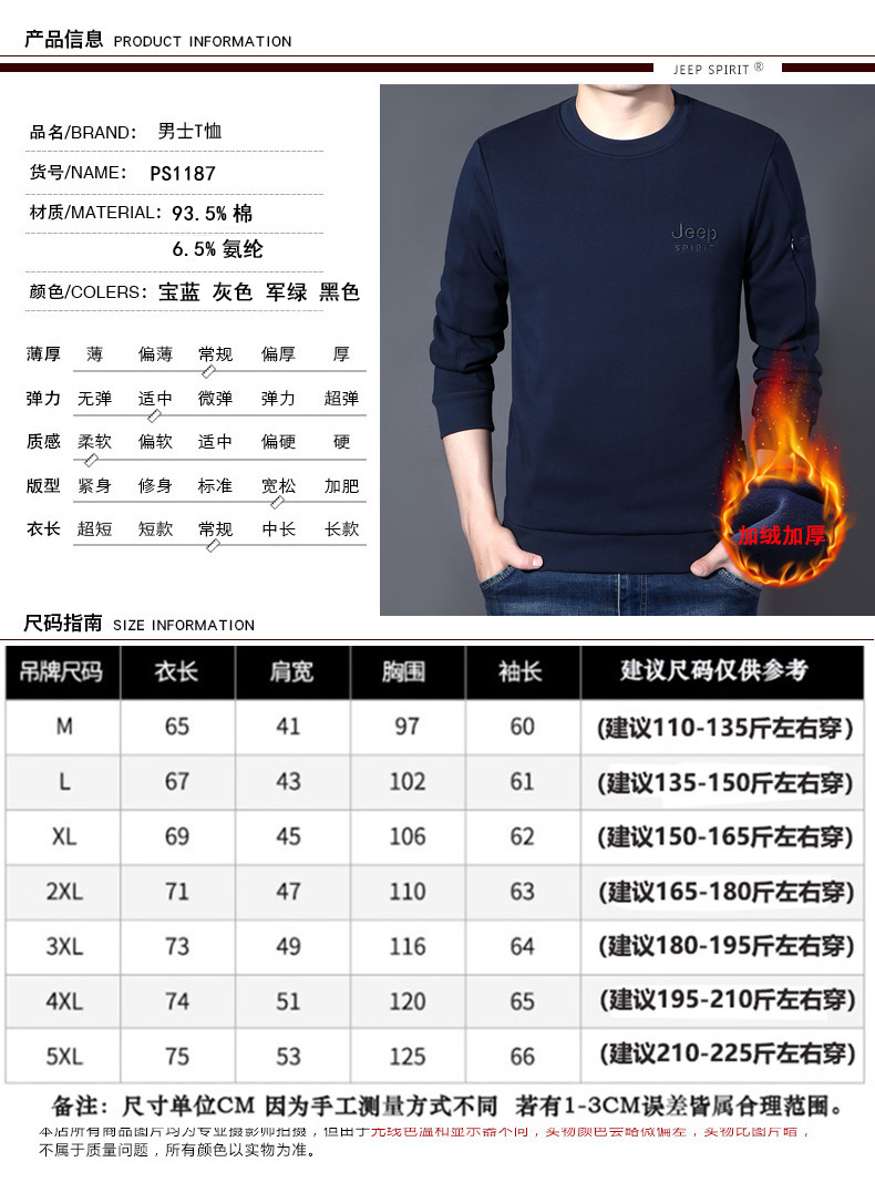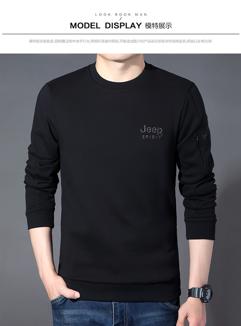 JEEP SPIRIT秋冬新款男士户外加绒T恤休闲简约日常百搭时尚透气保暖轻熟 DS-TS1187