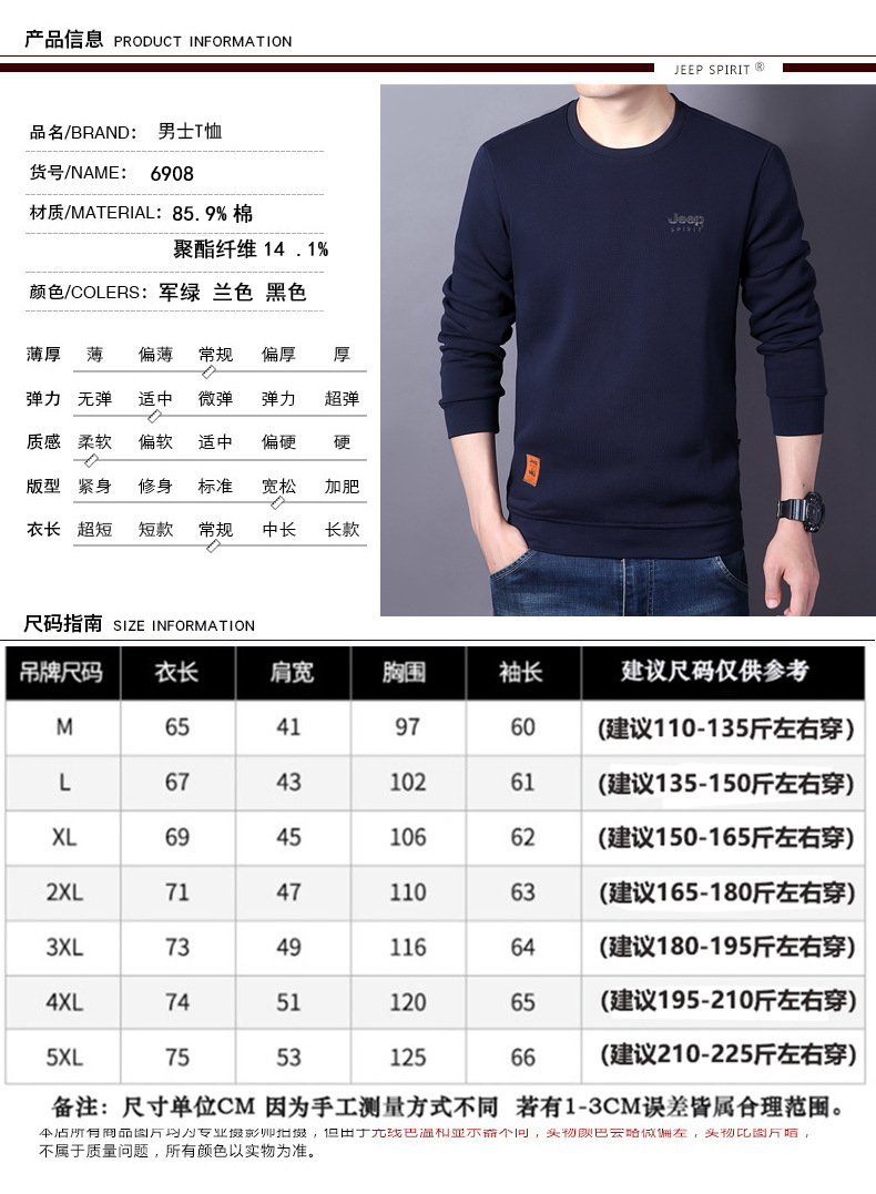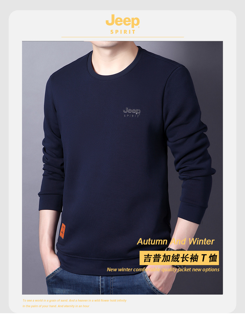 JEEP SPIRIT秋冬新款男户外加绒T恤保暖衣透气简约休闲百搭时尚日常商务 DS-6908"