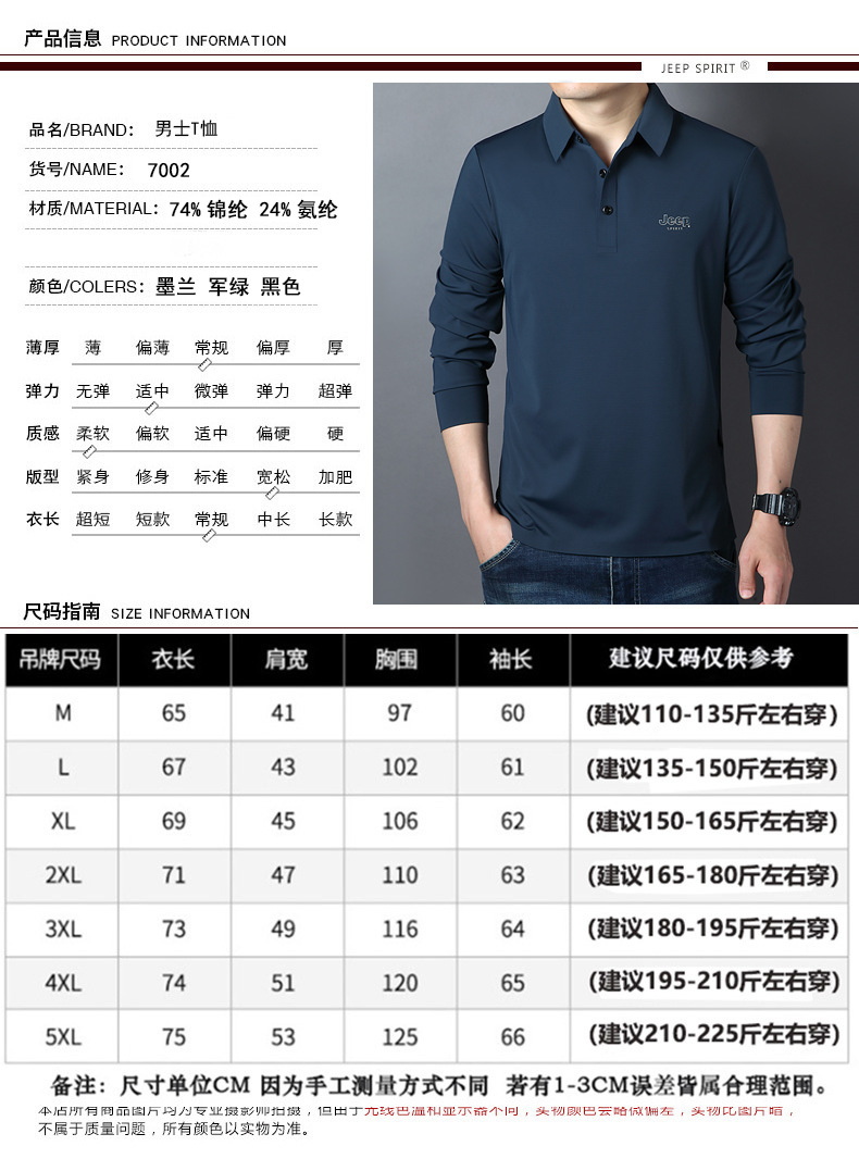 JEEP SPIRIT秋冬新款男士户外休闲T恤时尚商务轻熟通勤都市白领日常百搭 DS-7002