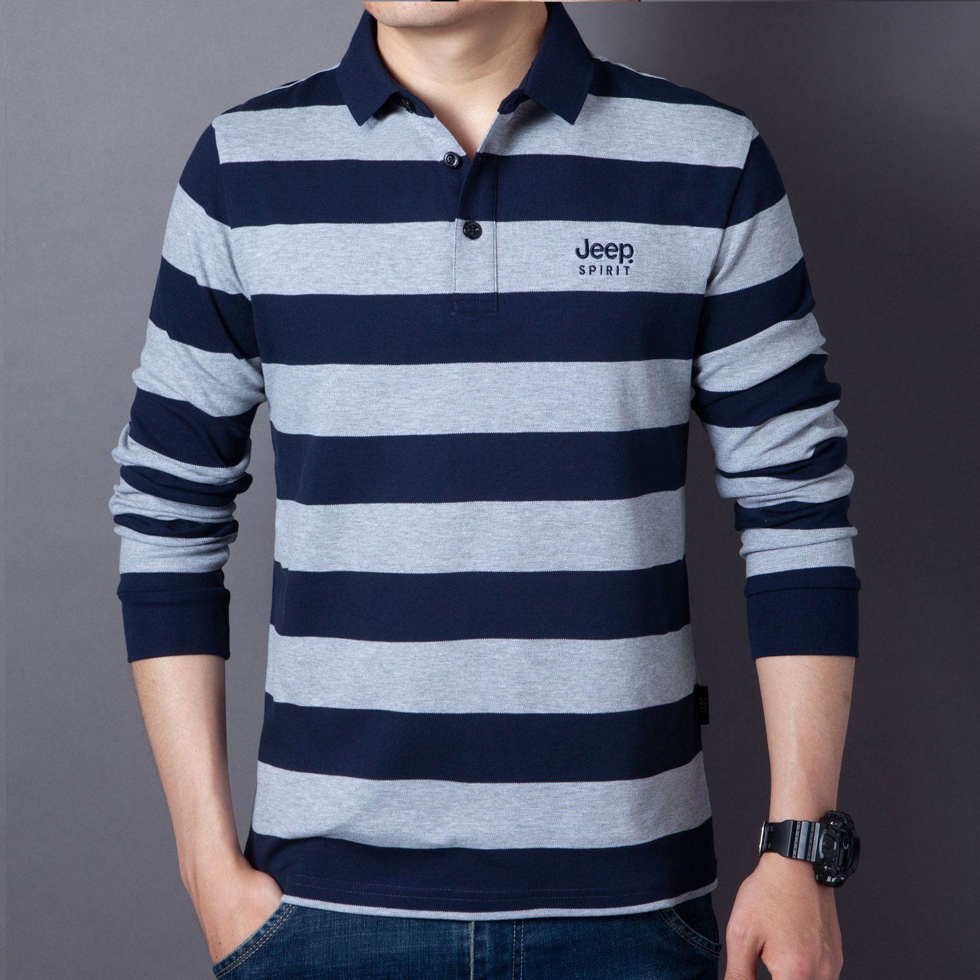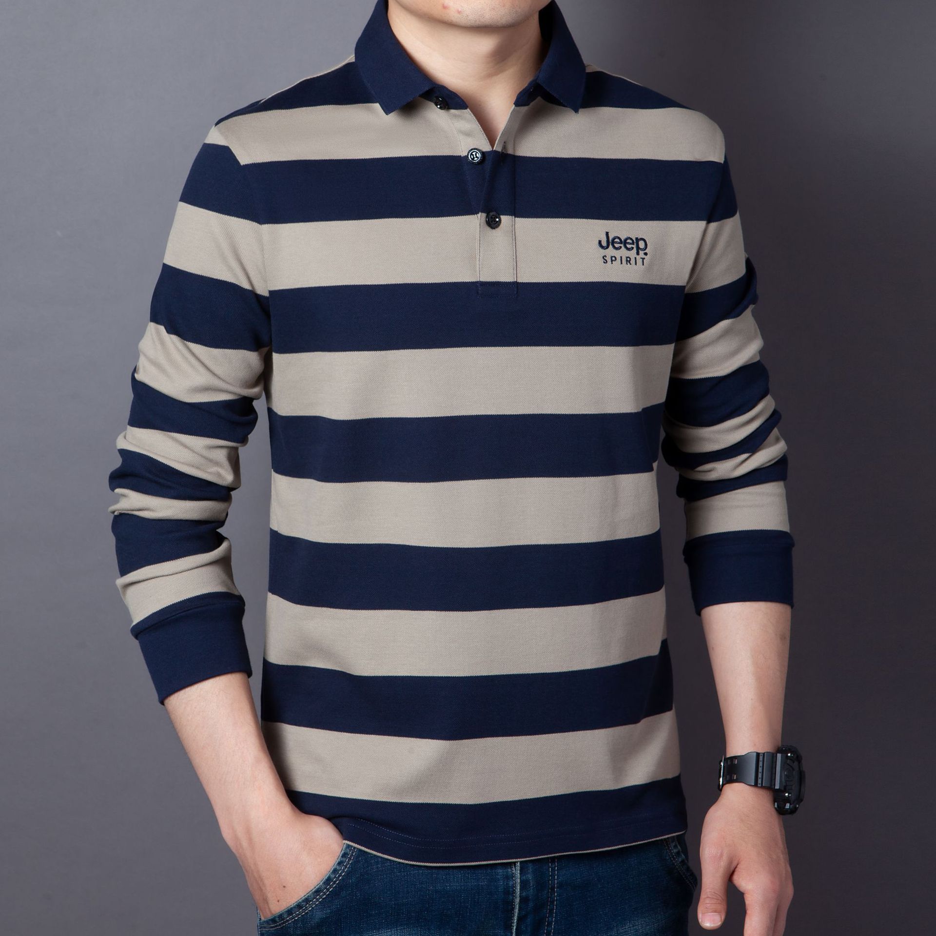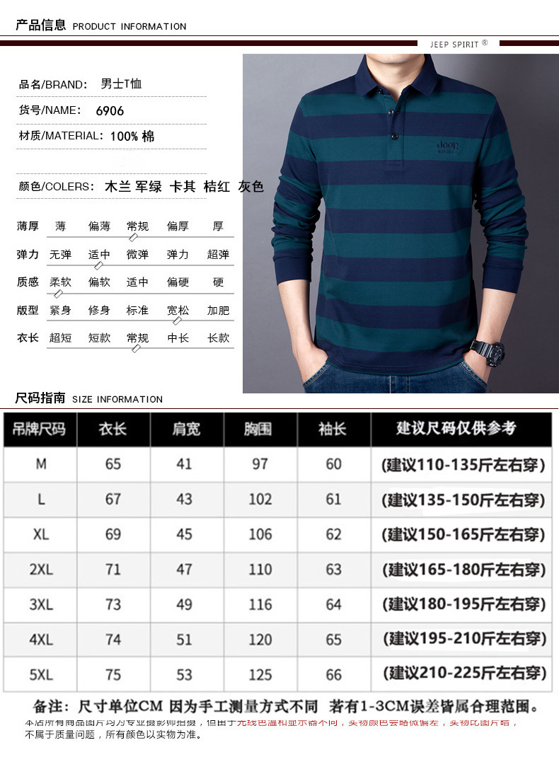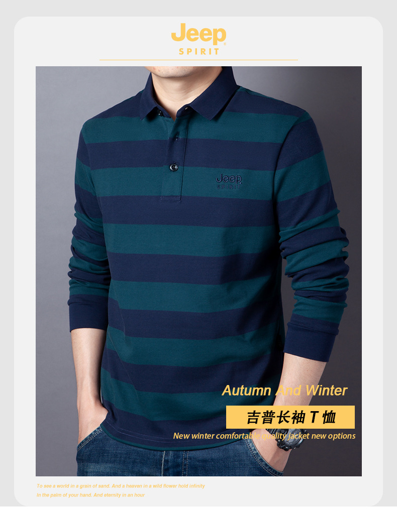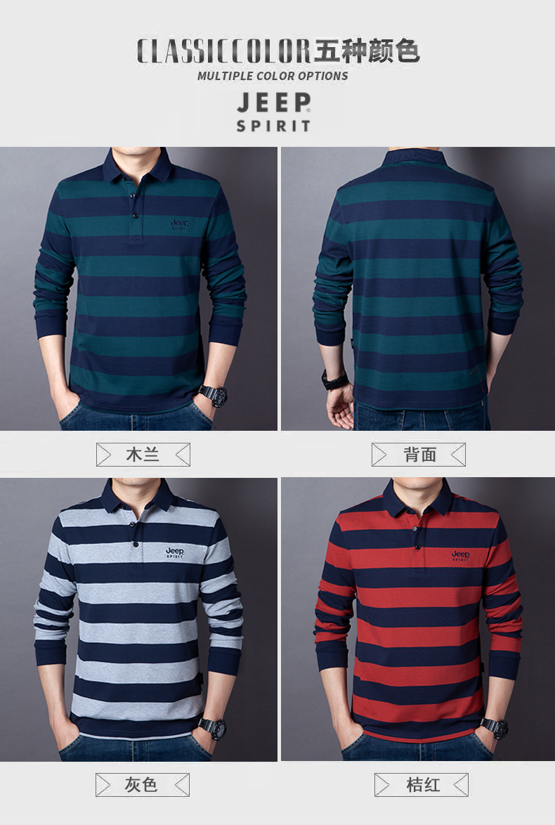 JEEP SPIRIT秋冬新款男士商务休闲T恤透气吸湿排汗耐磨简约休闲拼色时尚DS-6906