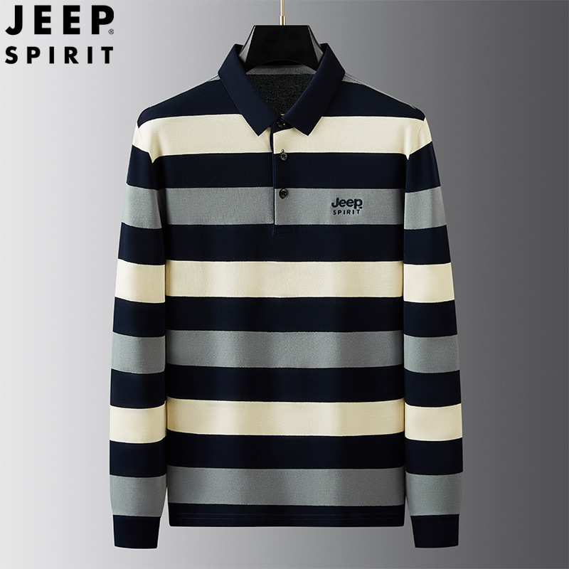 JEEP SPIRIT秋冬季新款男式休闲长袖T恤休闲舒适亲肤柔软翻领时尚潮流H-6901