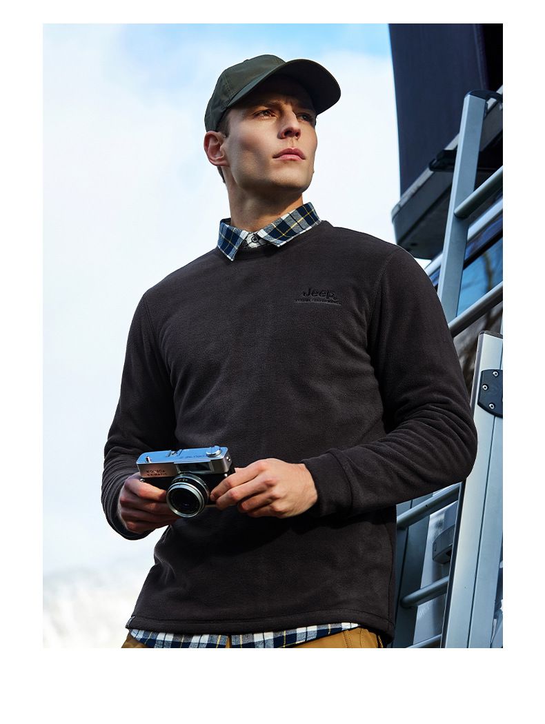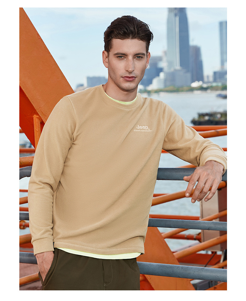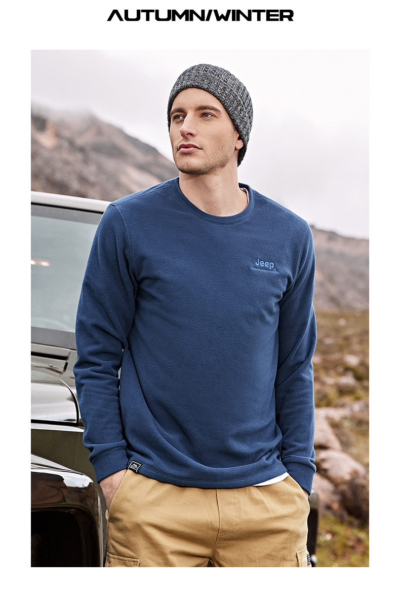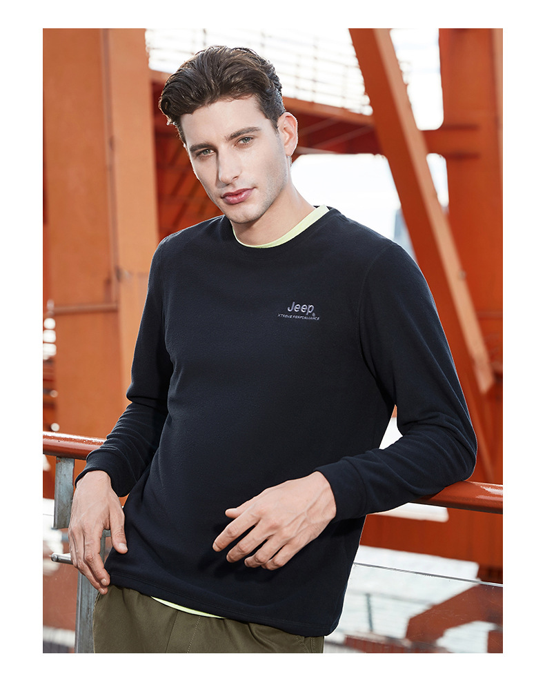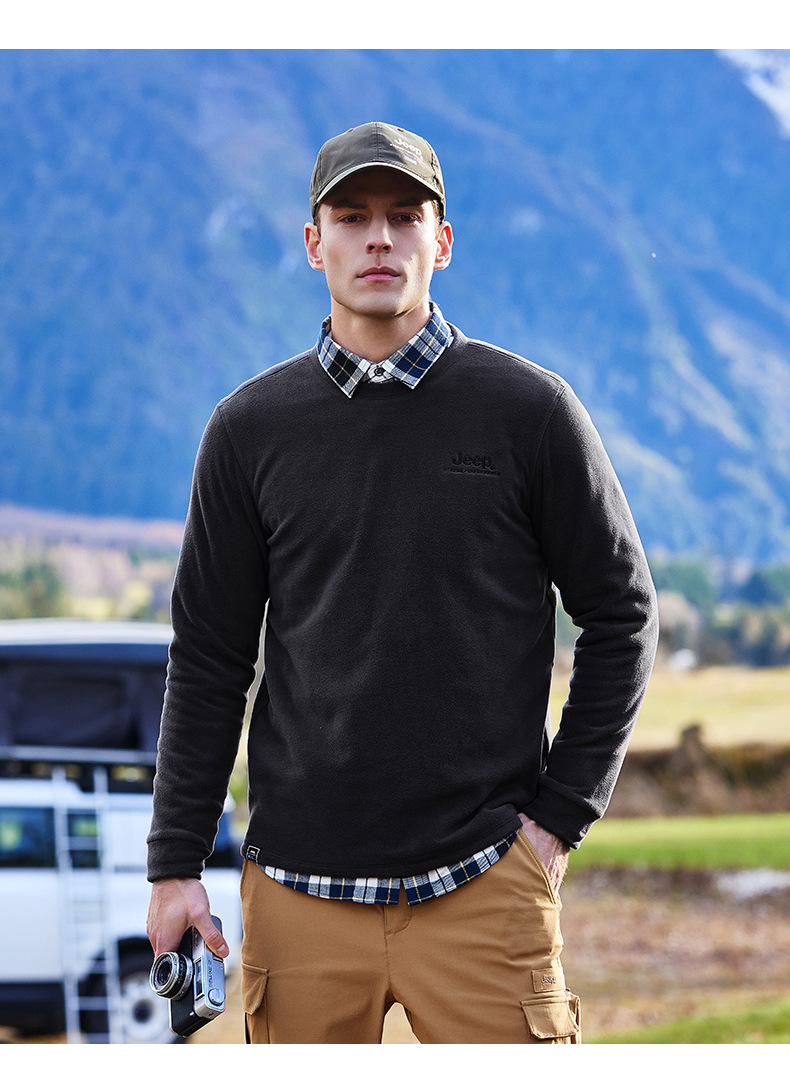 JEEP 秋冬摇粒绒卫衣男士圆领轻薄保暖时尚套头长袖上衣户外运动J032094291