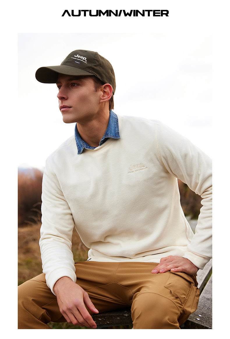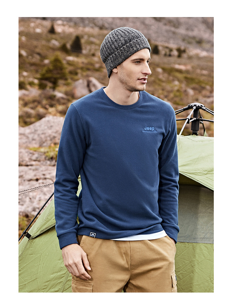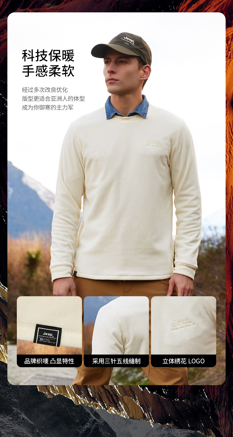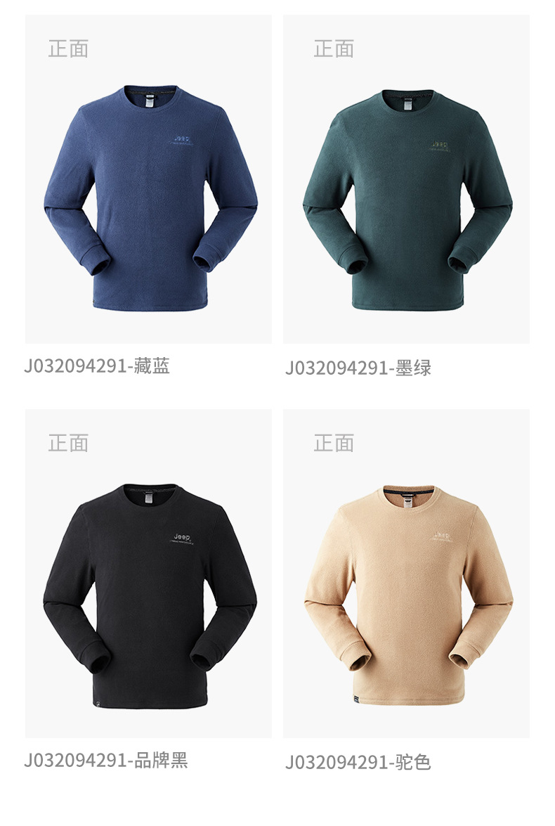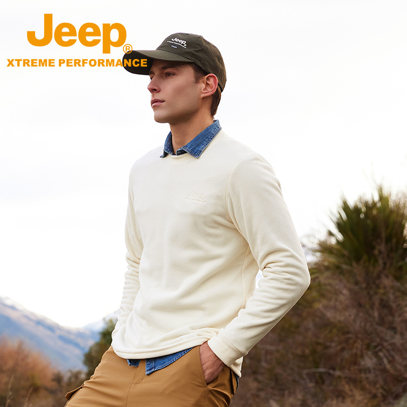 JEEP 秋冬摇粒绒卫衣男士圆领轻薄保暖时尚套头长袖上衣户外运动J032094291