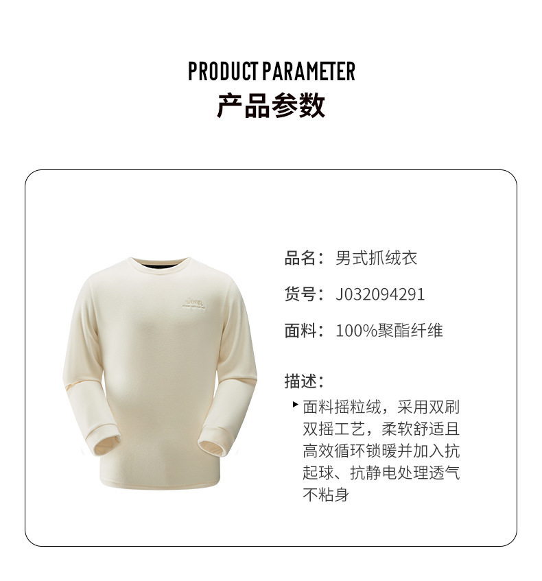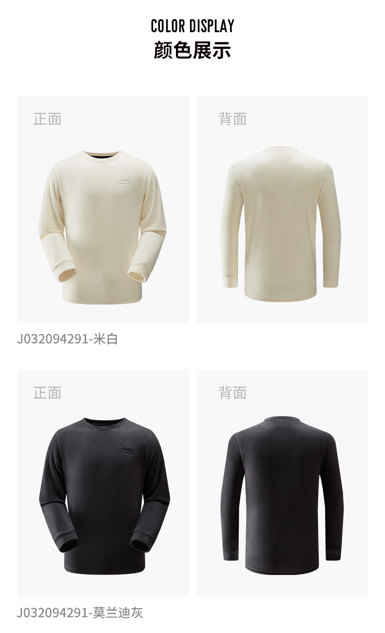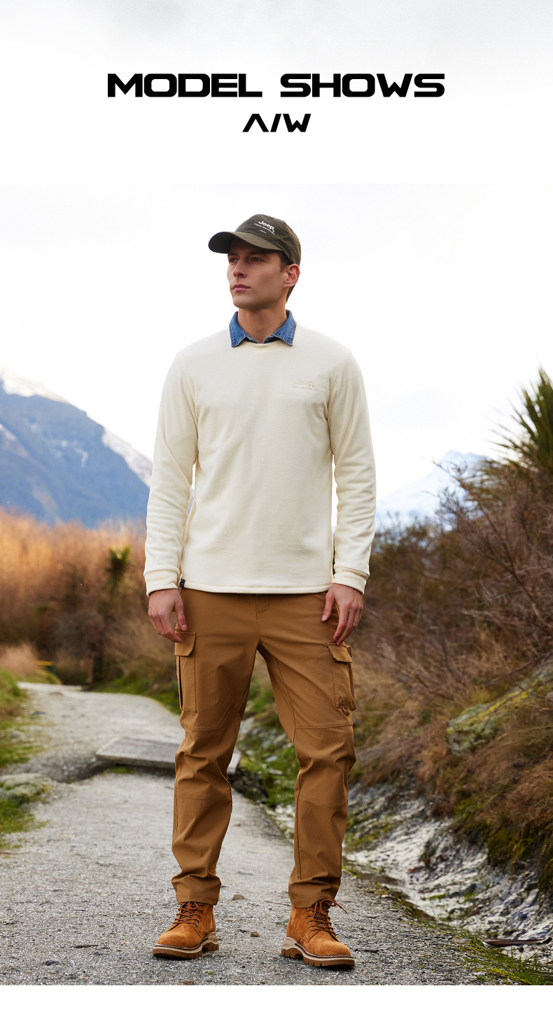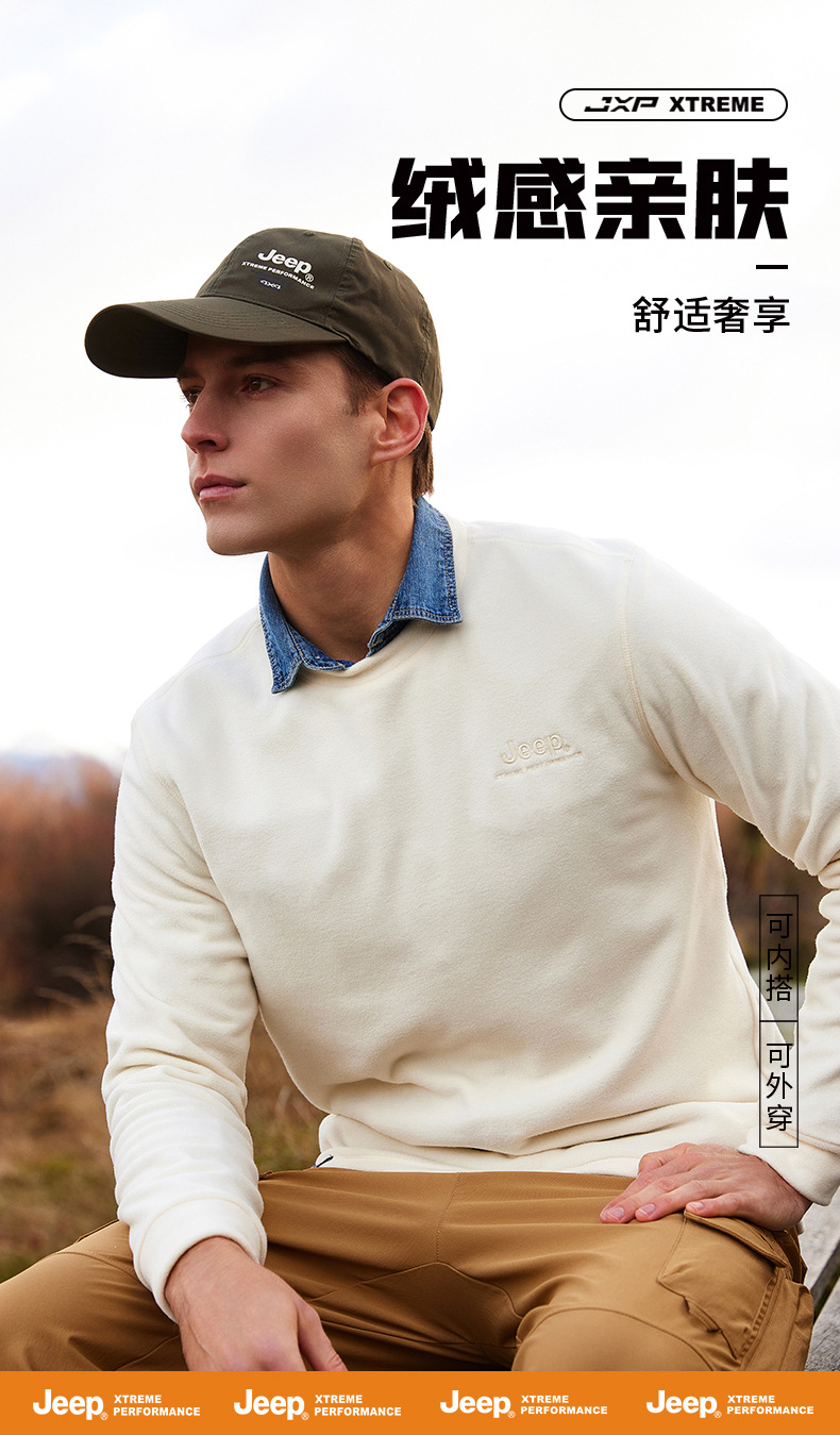 JEEP 秋冬摇粒绒卫衣男士圆领轻薄保暖时尚套头长袖上衣户外运动J032094291