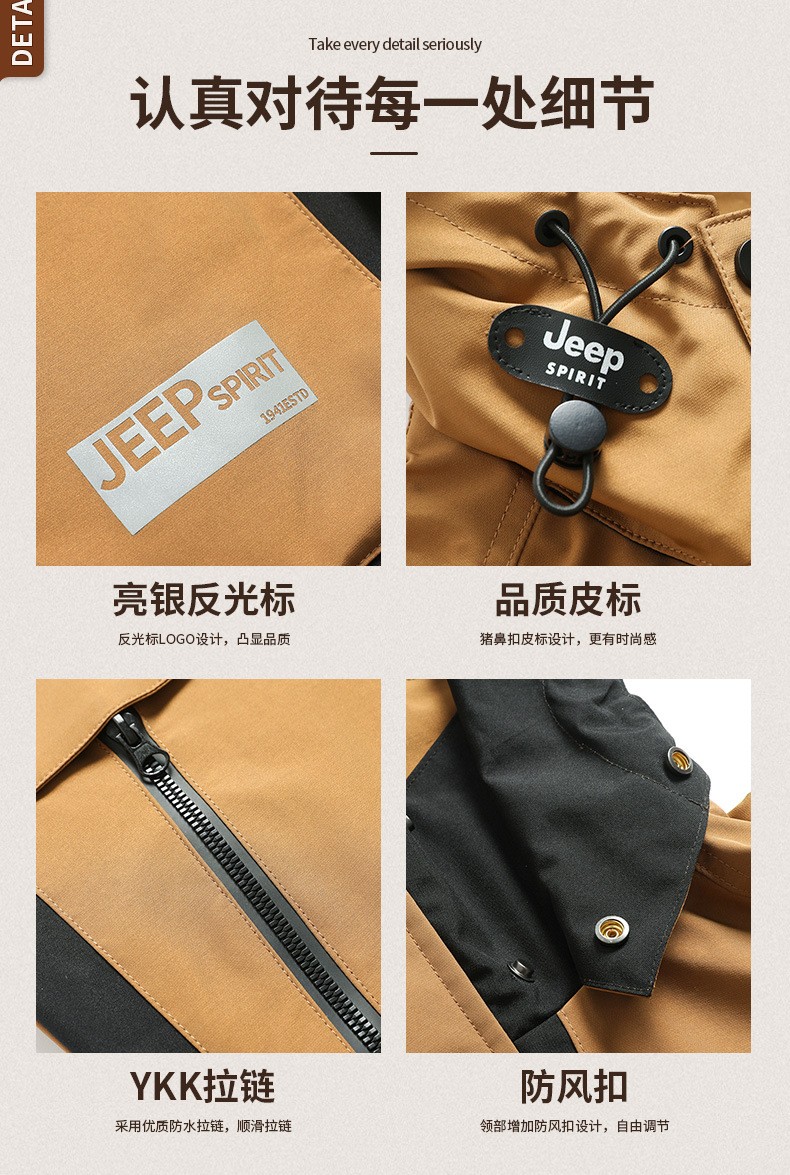 JEEP SPIRIT秋季男士新款休闲时尚户外夹克 透气防刮耐磨防泼水连帽JP6513
