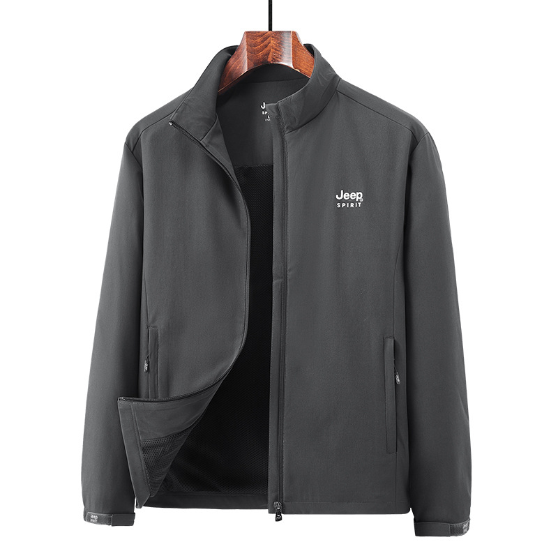 JEEP SPIRIT秋冬季新款男式休闲夹克立领领口舒适版型拉链口袋印花小标JP6555