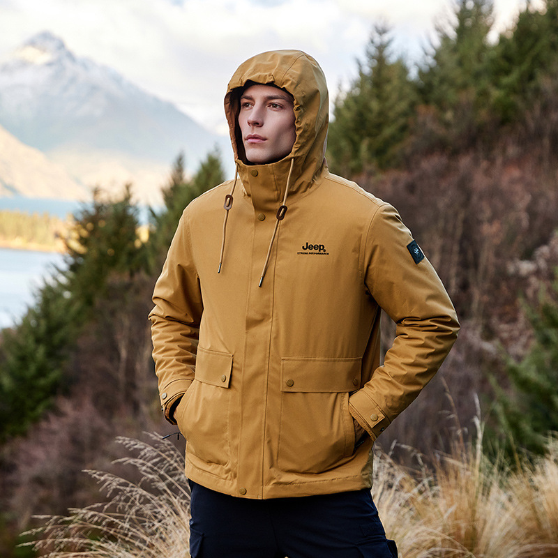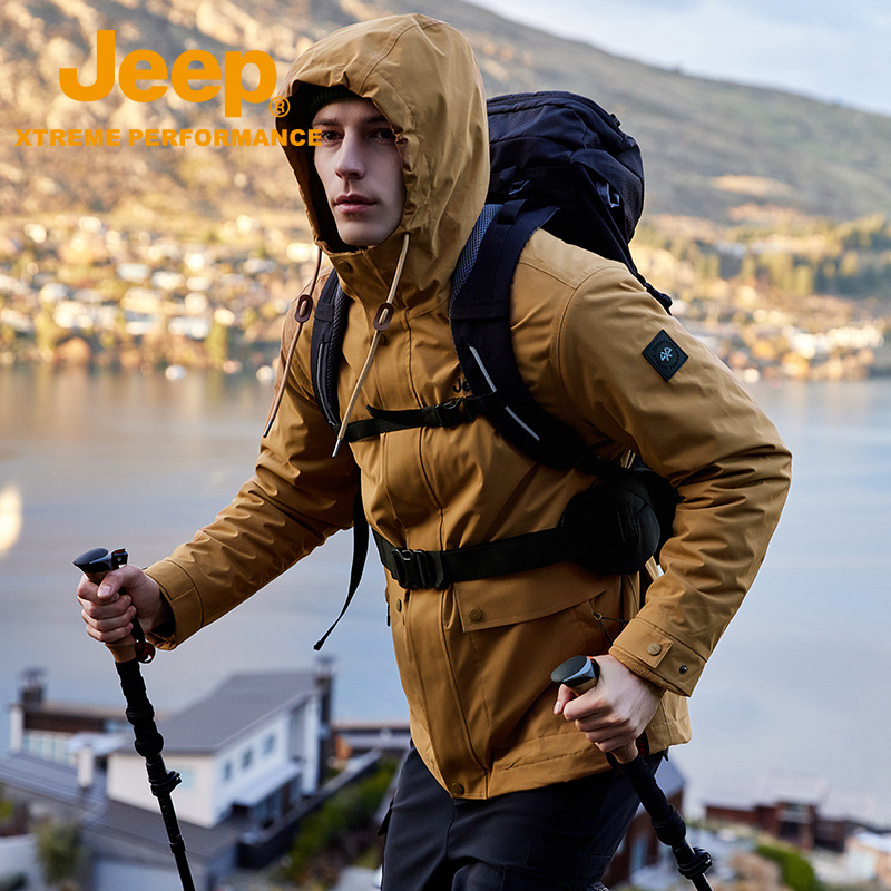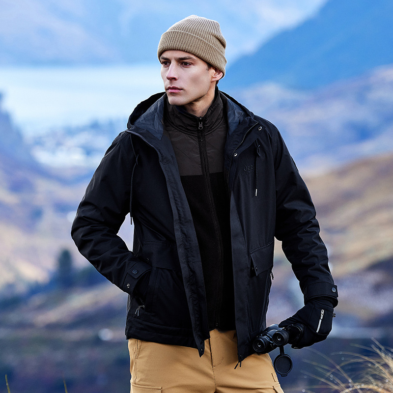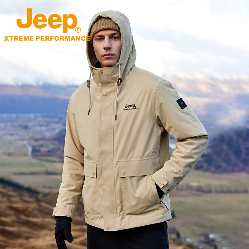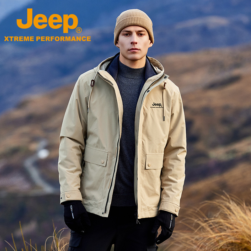 JEEP 秋冬季新款男式休闲冲锋衣抓绒两件套防水防油保暖舒适J342094084