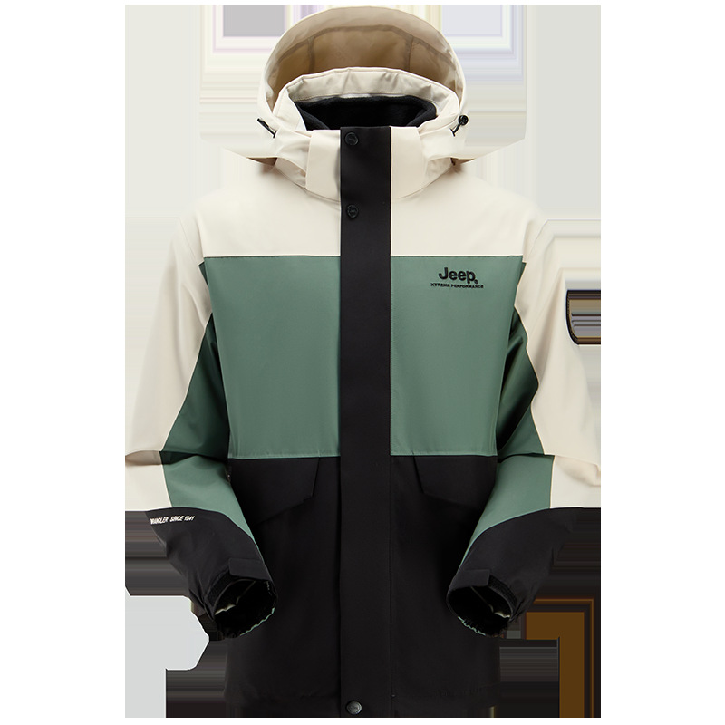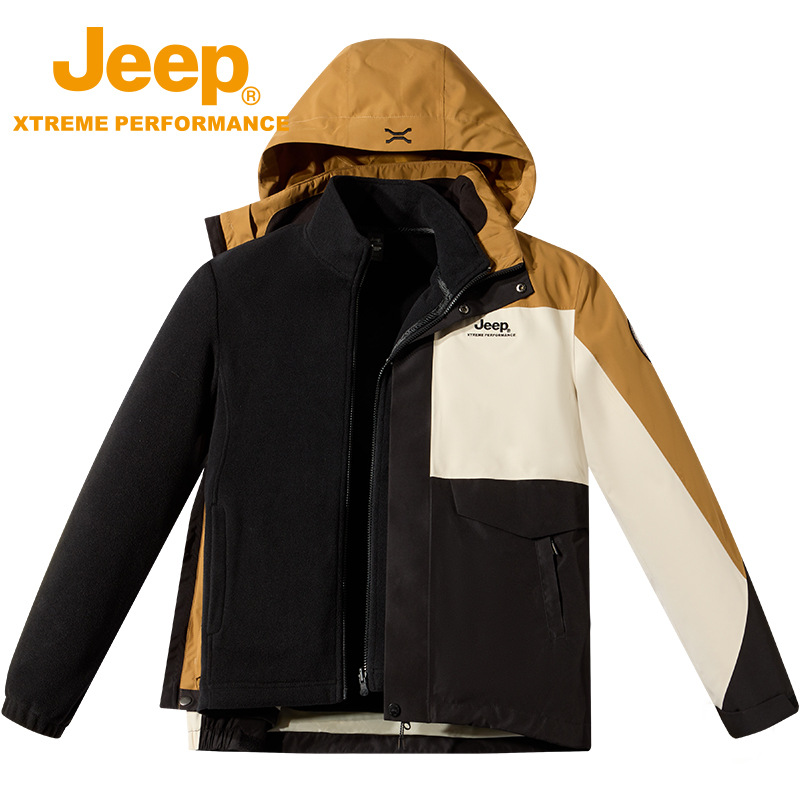 JEEP 秋冬季新款男女情侣款冲锋衣抓绒两件套保暖防水防油耐磨J342074052