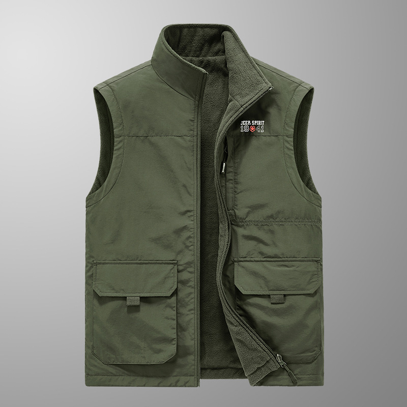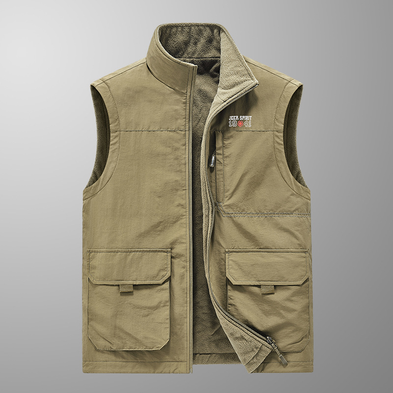 JEEP SPIRIT秋季新款男式户外双面加绒马甲休闲时尚透气舒适百搭立领领口JP6521