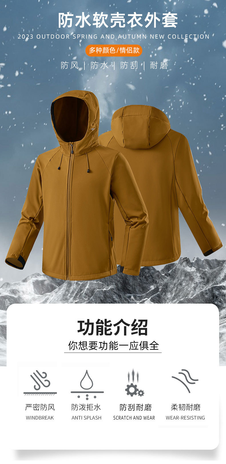DZRZVD/杜戛地秋冬新款户外软壳衣男战术防风外套保暖休闲登山服女231018
