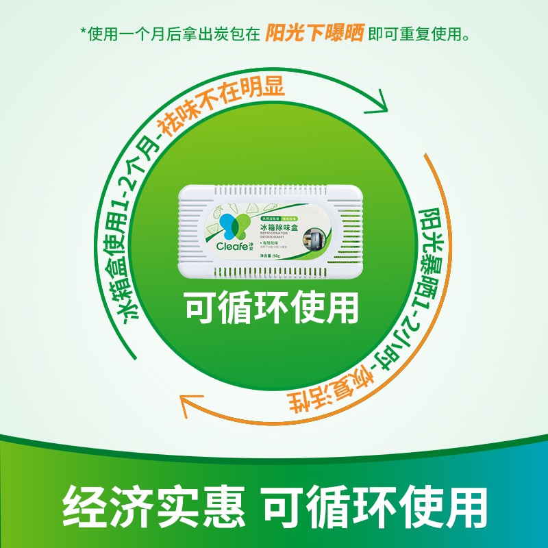 净安冰箱除味剂50g*6盒家用除臭剂盒活性炭纯物理吸异味除臭神器防串味