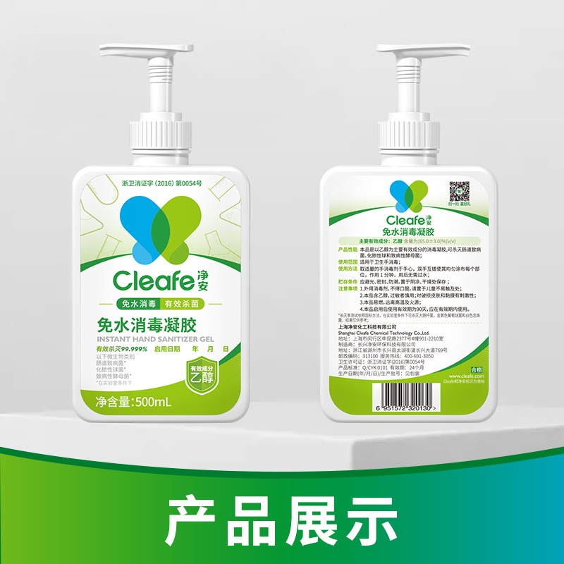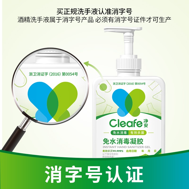 净安免洗洗手液酒精免洗消毒凝胶儿童学生杀菌消毒家用办公便携500ml