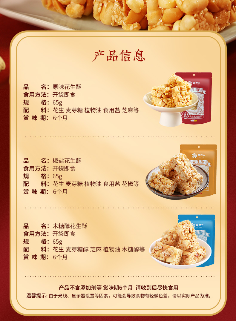 黄老五花生酥组合木糖醇10袋(木糖醇味总重75*10袋)