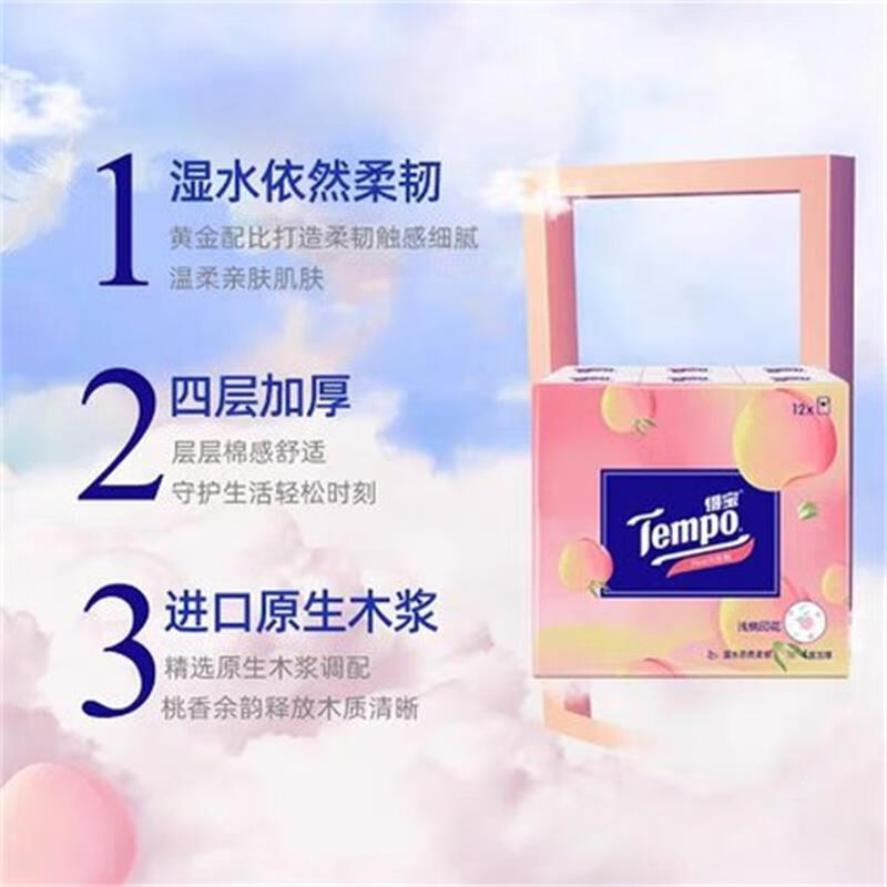 得宝(Tempo)手帕纸甜心桃味7片每包*12包/提*3提