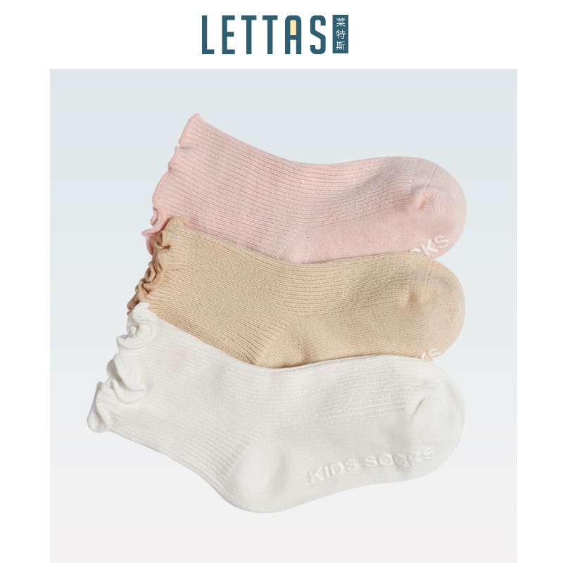 Lettas婴儿袜子秋冬厚款木耳花边女宝宝可爱公主袜女童荷叶边袜无骨棉袜W010