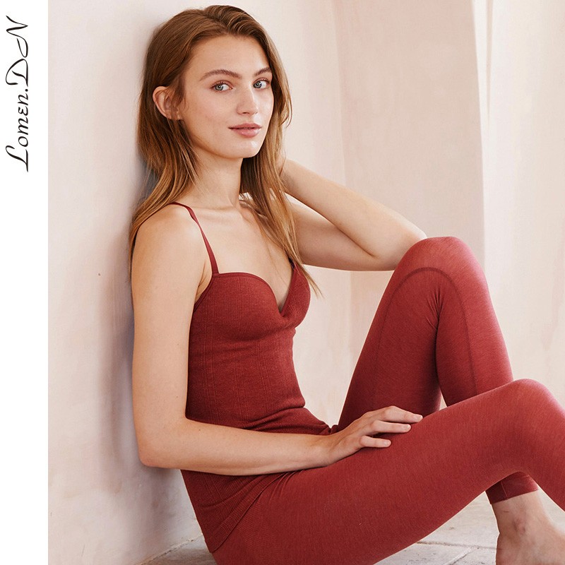 LomenD春季发热吊带背心女士罩杯打底秋衣内搭罗纹性感保暖内衣上衣秋冬TNC419