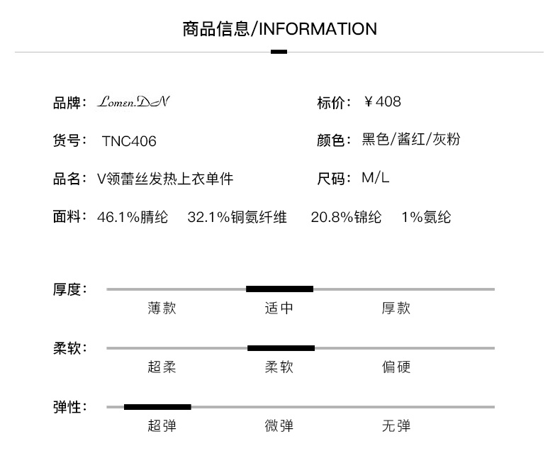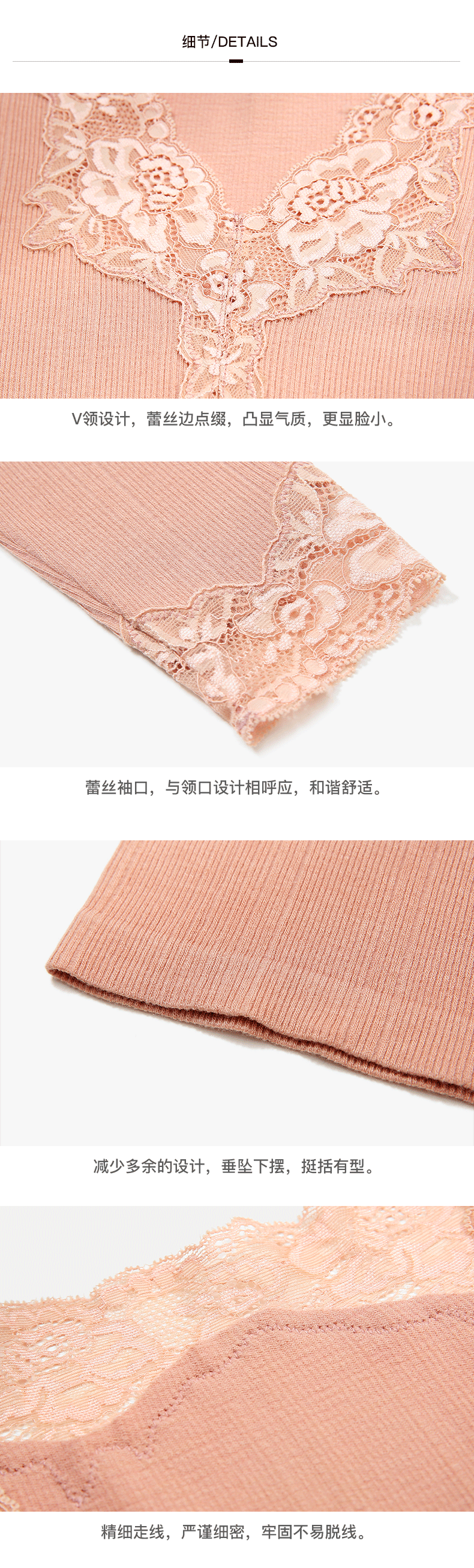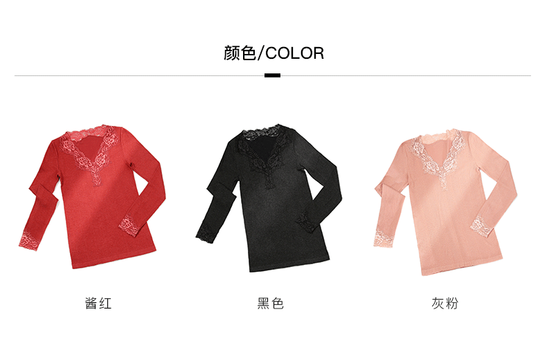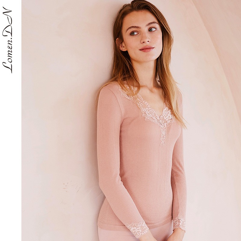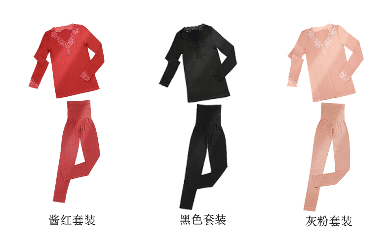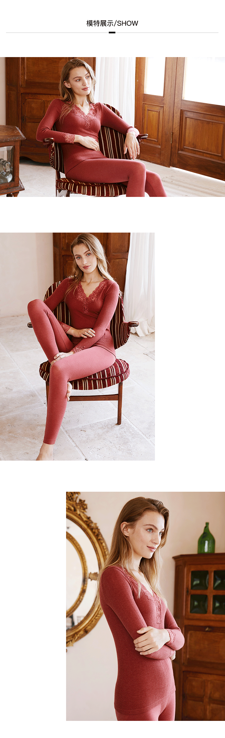 服饰配饰>女装>打底衫/套装> LomenD保暖内衣女士发热修身V领上衣秋冬季蕾丝美体打底衫秋衣秋裤套装TNC406