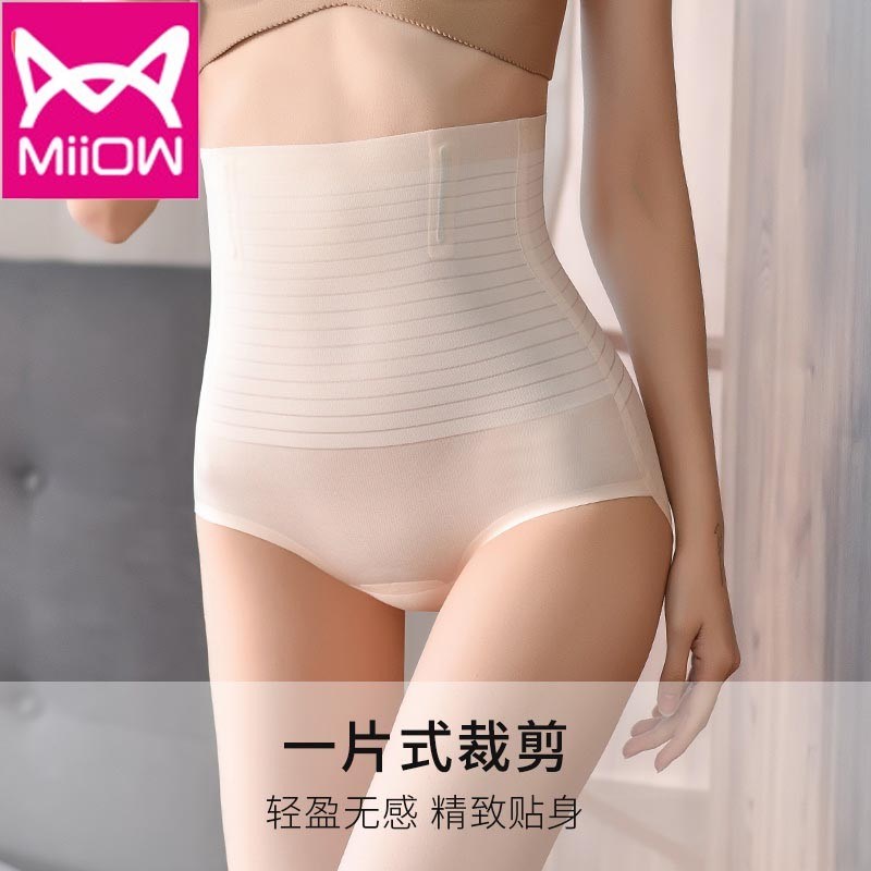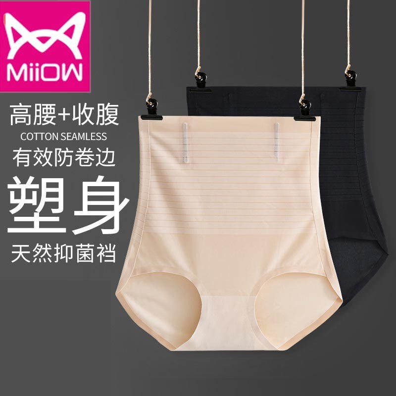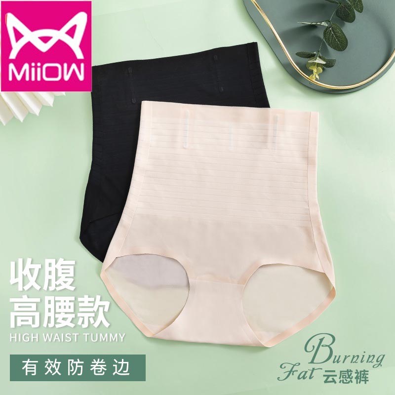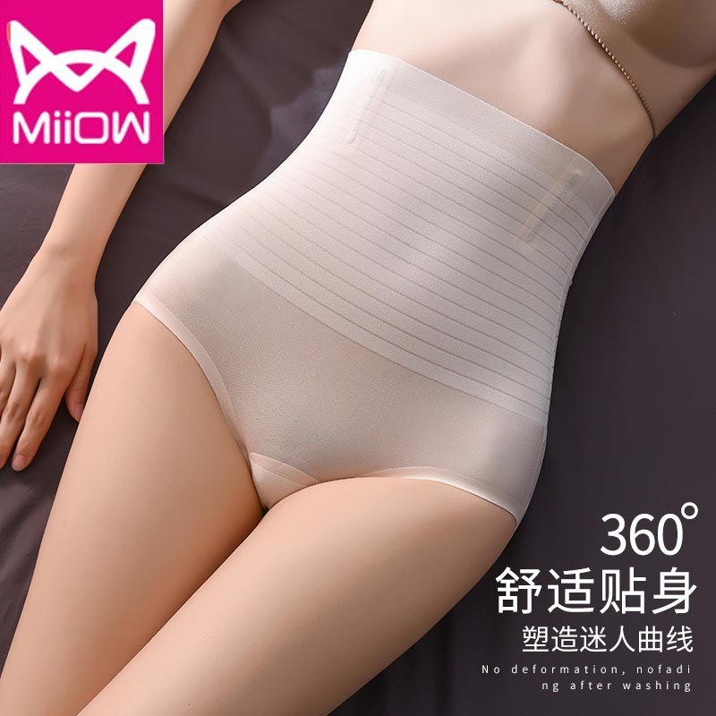 MiiOW/猫人女士高腰收腹暴冰裤安全裤防走光无痕高腰薄款平角裤内裤夏天可穿的收腹裤LN007