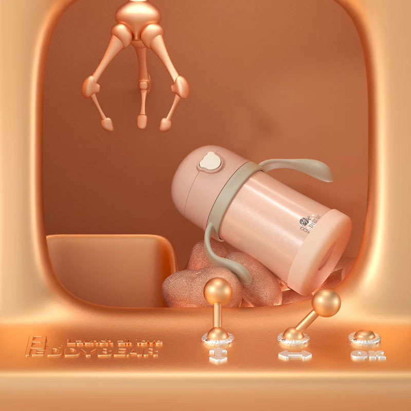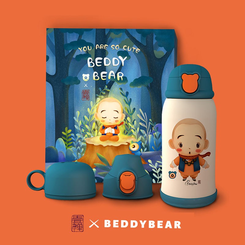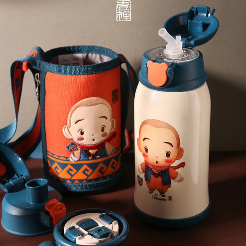韩国杯具熊一禅小和尚儿童保温杯宝宝男女带吸管水壶316不锈钢水杯子