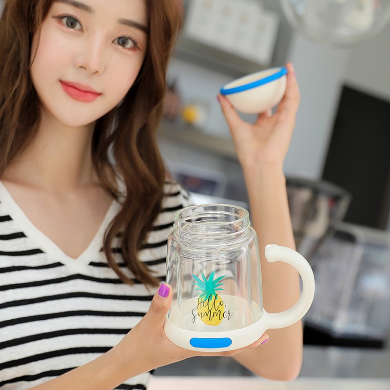 韩国杯具熊杯子单双层耐热玻璃杯女花茶杯过滤办公便携创意可爱水杯
