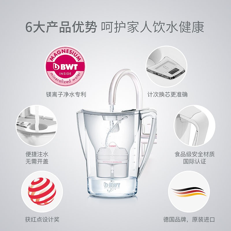 德国BWT净水壶家用倍世过滤水壶镁滤芯进口净水器penguin1壶1芯