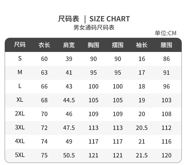 规格 :M L XL 2XL 3XL 4XL 5XL
