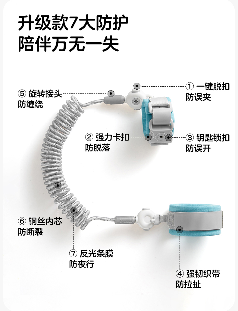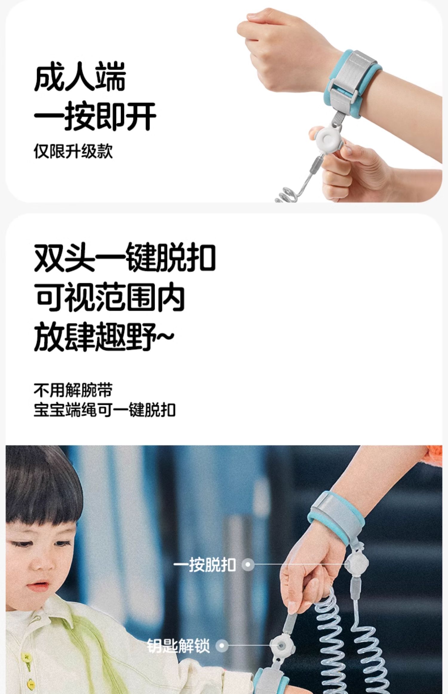 KUB可优比-一键脱扣防走失带J3-升级款-粉色2M