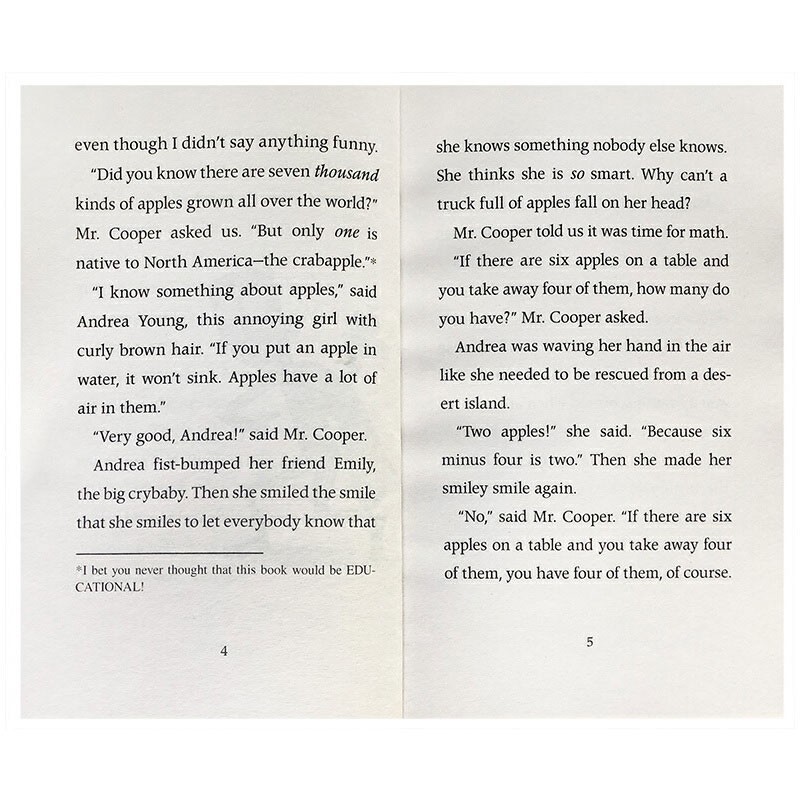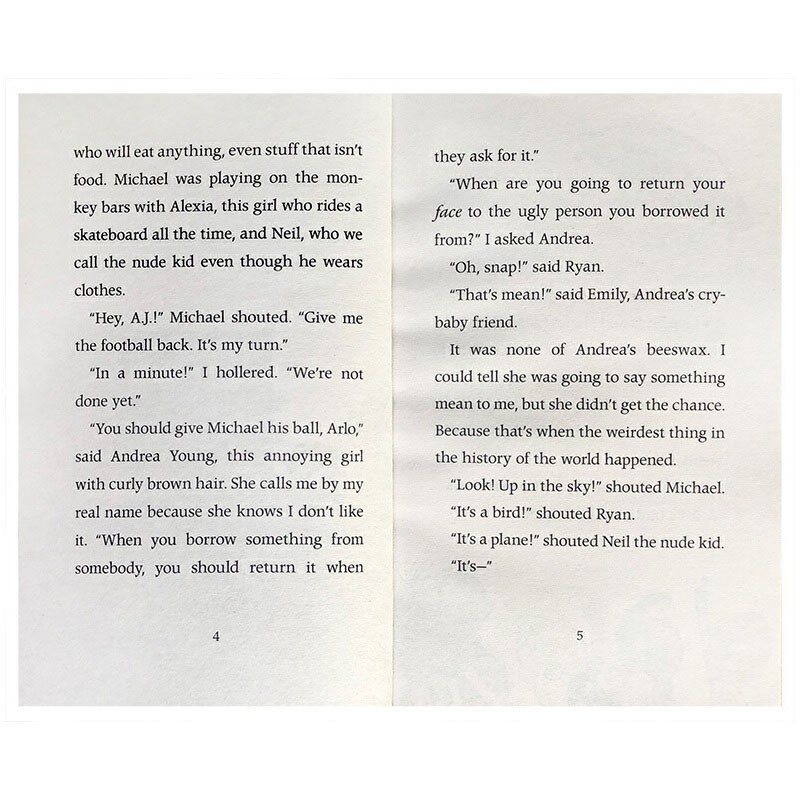 男主人公是一个小学生,名字叫AJ,整个系列就是以他的视角展开,描写了一二年级发生的趣事。这个学校实在是太奇怪了,完全颠覆了我们对“学校”的认识,它一点都不严肃、不古板、甚至是有点疯狂,奇怪的人和怪异的事儿比比皆是。