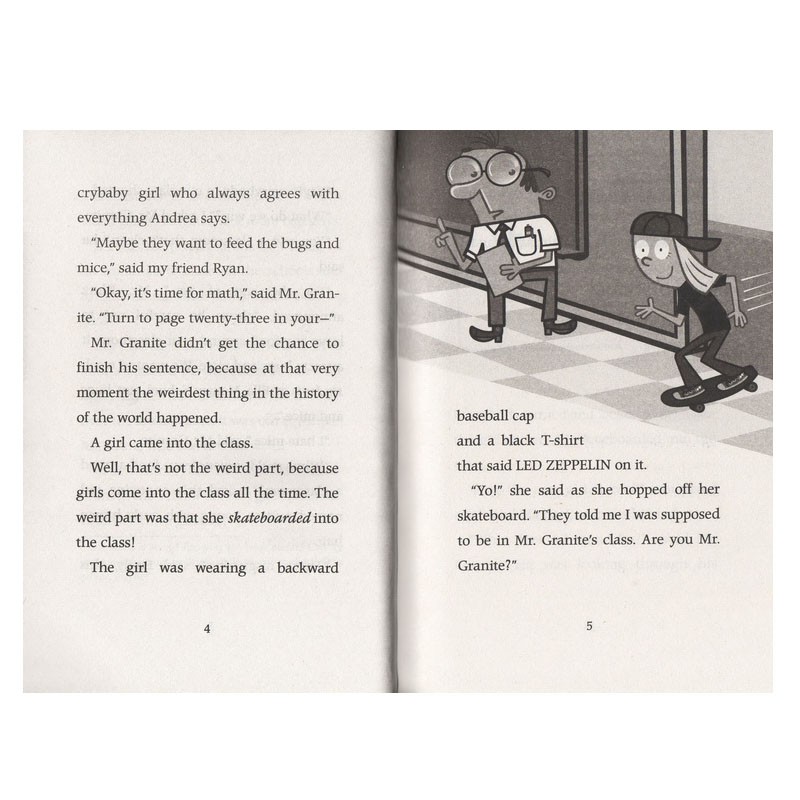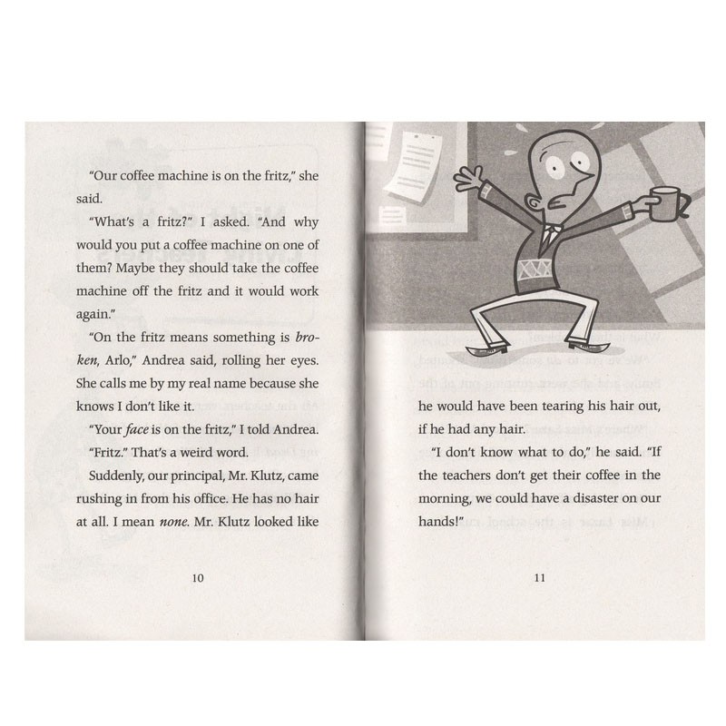 男主人公是一个小学生,名字叫AJ,整个系列就是以他的视角展开,描写了一二年级发生的趣事。这个学校实在是太奇怪了,完全颠覆了我们对“学校”的认识,它一点都不严肃、不古板、甚至是有点疯狂,奇怪的人和怪异的事儿比比皆是。