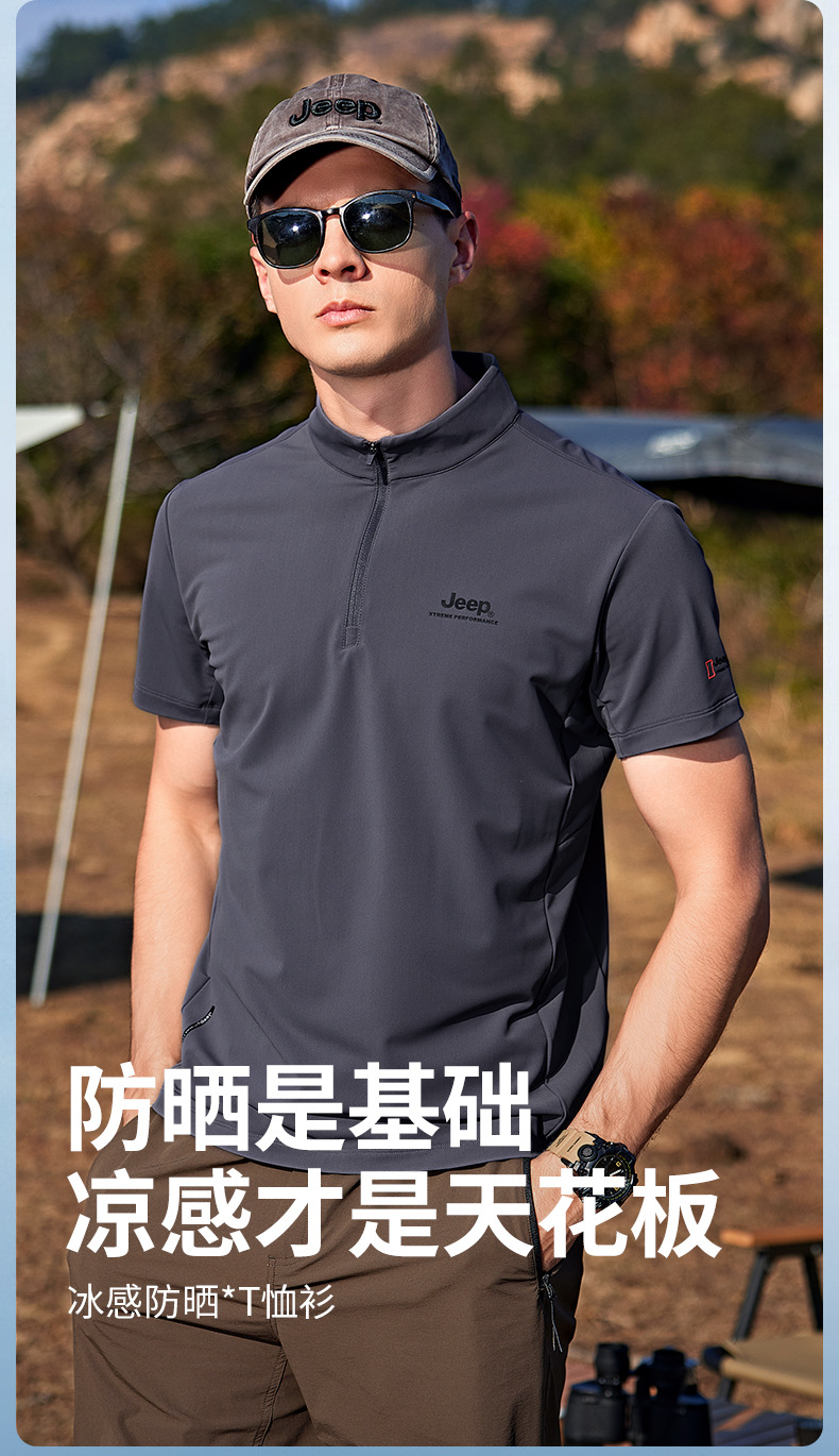 JEEP 夏季新款男式短袖T恤衫休闲百搭吸湿速干防水防污舒适干爽J422094538