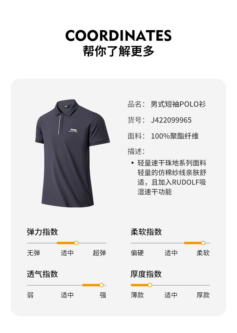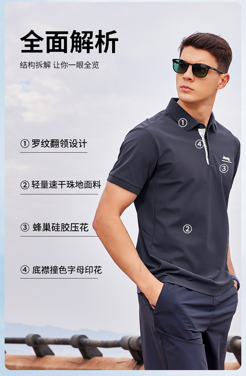 JEEP 夏季新款男式短袖T恤衫休闲百搭吸湿速干防水防污舒适干爽J422099965