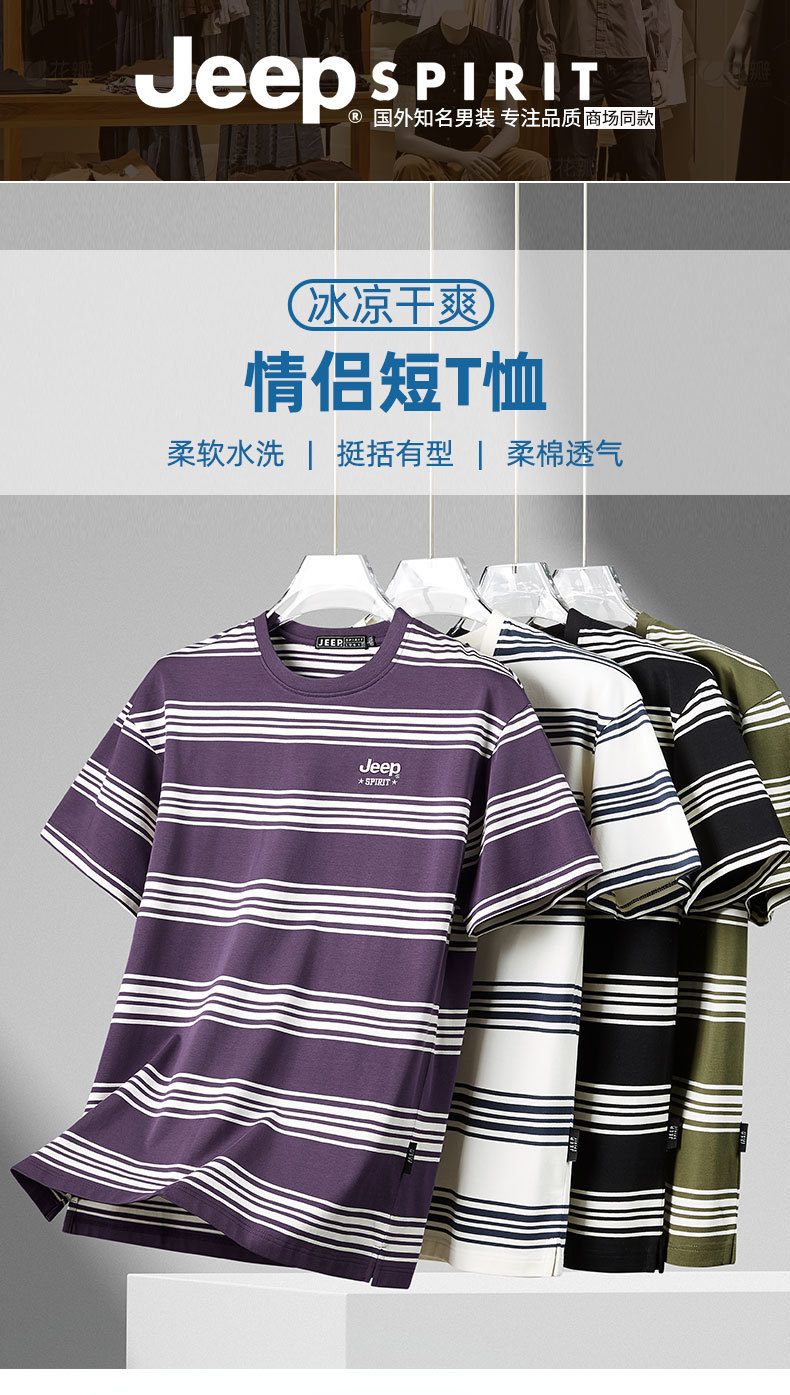 JEEP SPIRIT夏季新款男女款舒适短T恤干爽透气柔软亲肤吸湿速干休闲百搭HY-TS68003