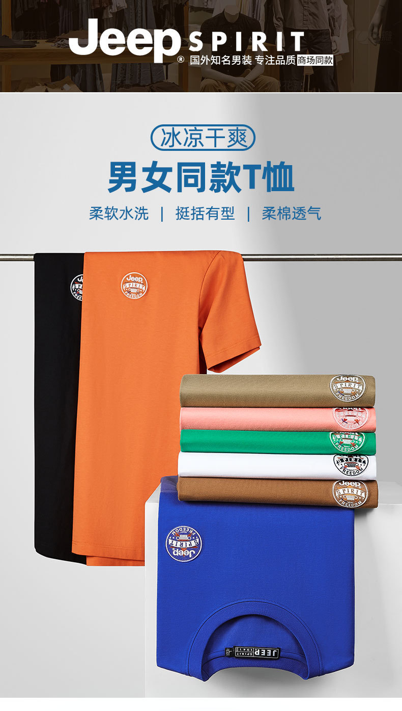 JEEP SPIRIT夏季新款男女同款T恤干爽透气柔软亲肤吸湿速干休闲百搭日常HY-TS68026